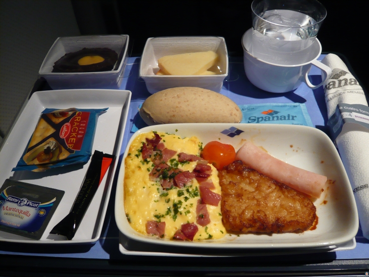1. La verdad es que soy la única persona que conozco a la que le gustan los menús de los aviones. Pero no hablo de esos lujosísimos menús para ricos que pones aquí, no… hablo de esas minúsculas bandejitas con su aliño para ensalada en bote, su solitaria hojita de lechuga-plástico para dicha ensalada, panecillo de los que te sobran del desayuno para mojar en el café, sus minicubiertos… y todos esos topicazos de los vuelos de Iberia, en clase turista, claro. Sí, soy un enfermo xD.