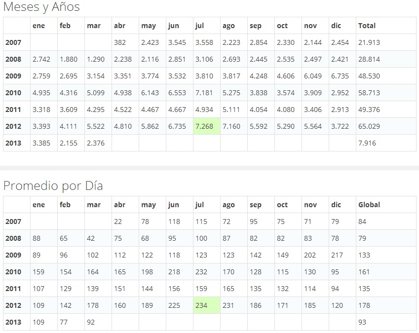Aprovechando el cambio de look del blog, quiero compartir las estadísticas de visitas del último año (desde el 26 de marzo 2012).