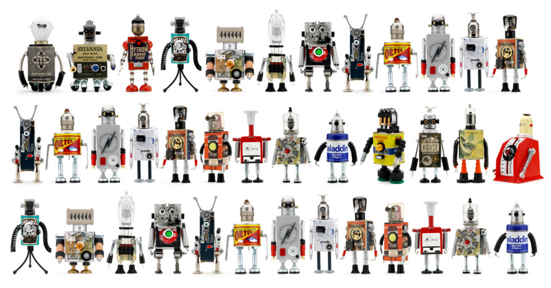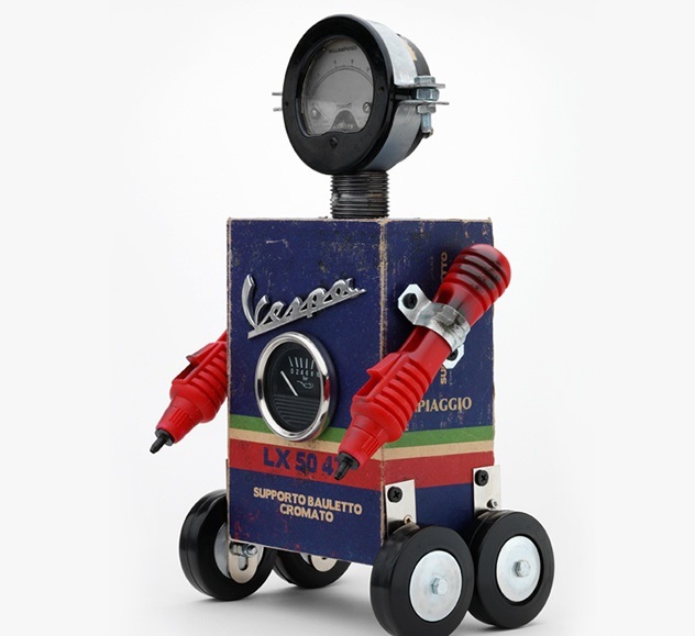 Javier Arcos Pitarque construye robots de manera artesanal, con elementos comunes de andar por casa. El resultado son piezas tan simpáticas como éstas.
