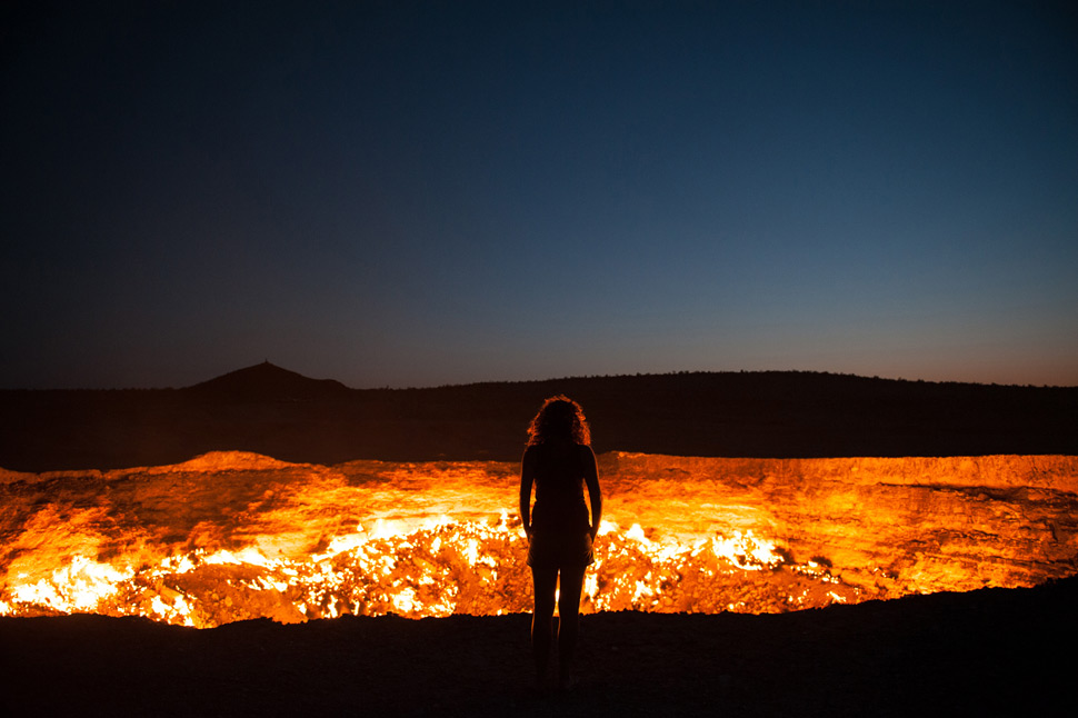 En medio del desierto de Tukmenistán, se encuentra este curioso fenómeno de la naturaleza. El Pozo de Darvaza (Derweze) se trata de un cráter surgido a raíz de unas excavaciones en busca de gas. Los soviéticos le prendieron fuego para extinguirlo, pero las llamas no se han apagado desde 1971, creando un espectáculo impresionante, tanto de día como de noche.