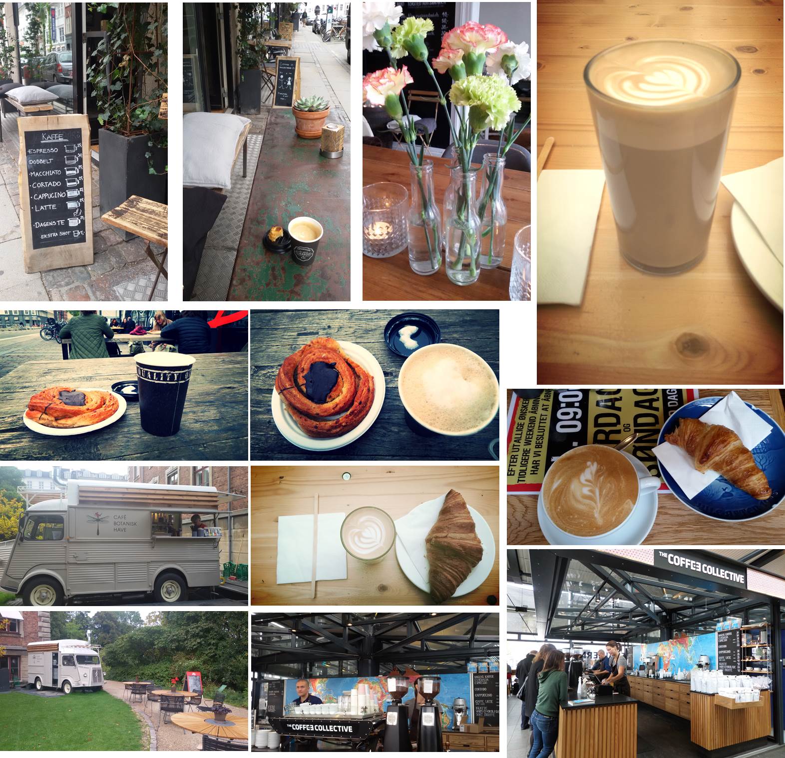 - La pasión por el café. Les gusta tanto y lo hacen con tanto amor que es imposible que les salga mal. Destaco los cremosos y apetecibles cafés de: The Coffee Collective, Kompa’9, Kleist Kafe, Clarrod’s Interior, The Laundromat Cafe y el coffee truck del Botanisk Have. Utilizan mucho los términos italianos para referirse al café: macchiato, latte… pero sorprende encontrarse un cortado, como en España, aunque es un poco más grande que el nuestro. Todo ello se puede acompañar para desayunar del clásico croissant francés o algo de bollería típica del país, esos enormes bollos esponjosos de canela o crema; o hacerlo más sano con un tazón de granola con yogur, o panes negros y zumos vegetales.