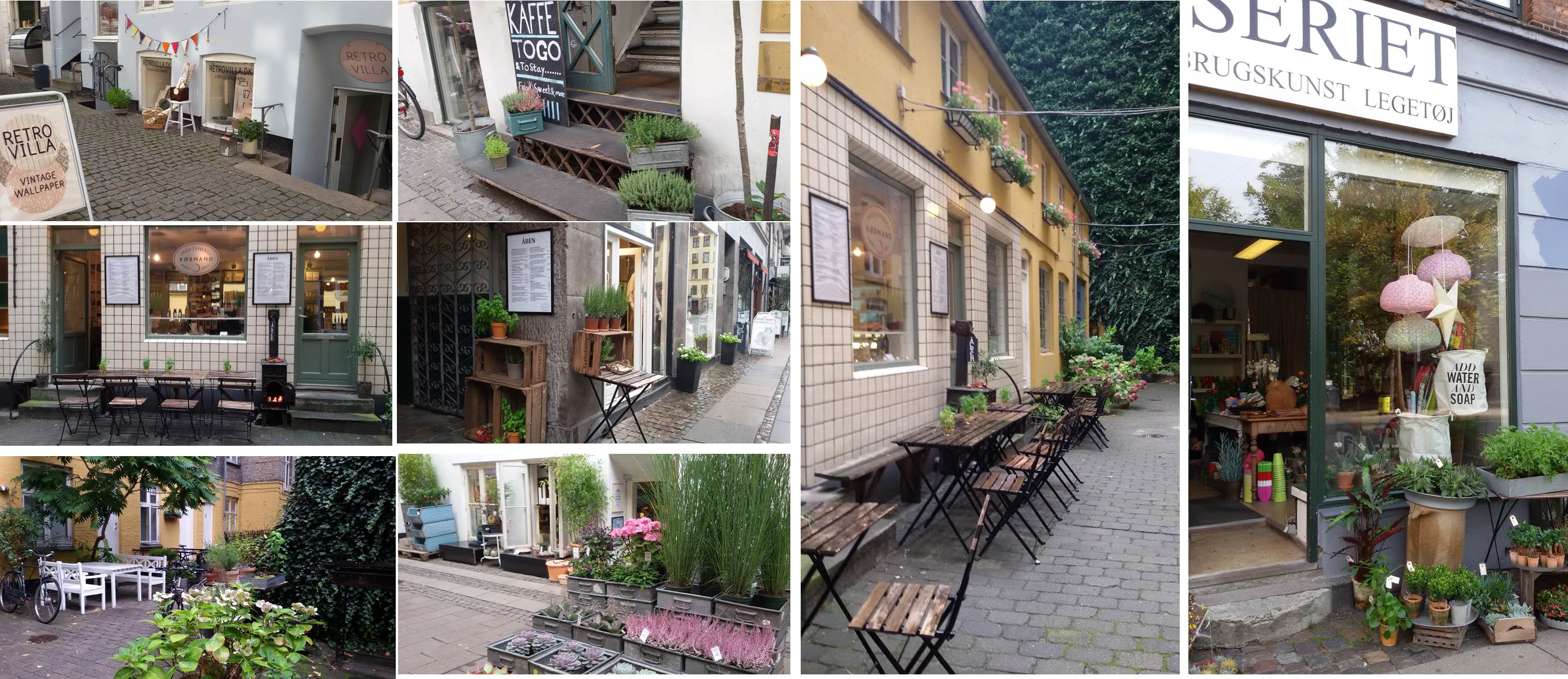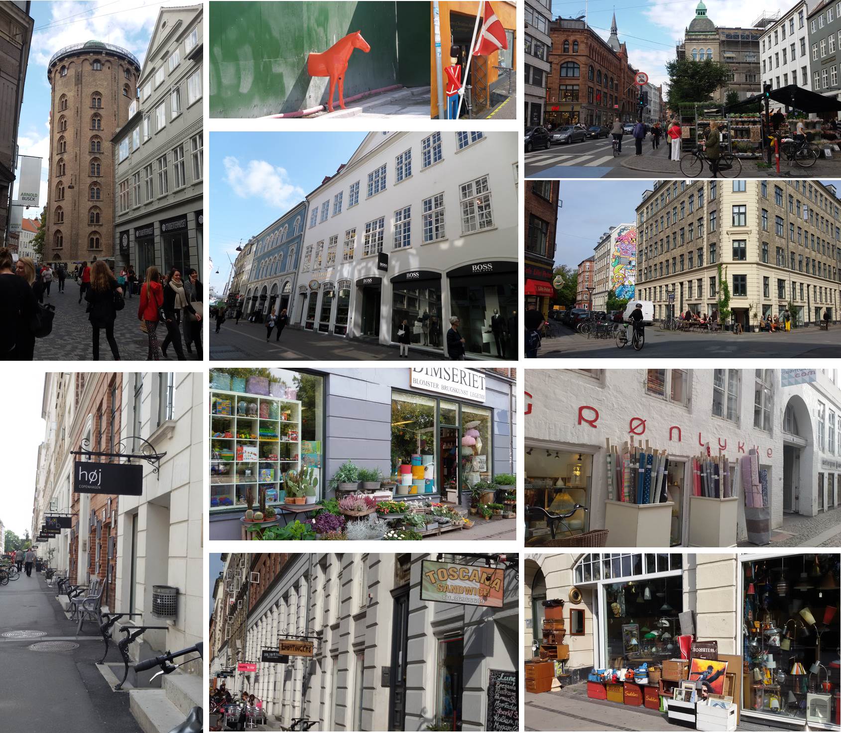 - Calles de moda: Jægersborggade, en Nørrebro, junto al barrio musulmán y el cementerio de Assistants. Værnedamsvej, en el elegante barrio de Frederiksberg. Elmegade y Ravnsborggade, junto al puente que cruza a Nørrebro. Kompagnistræde, cruza el centro y no es tan comercial como su paralela Stroget.