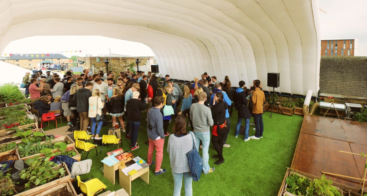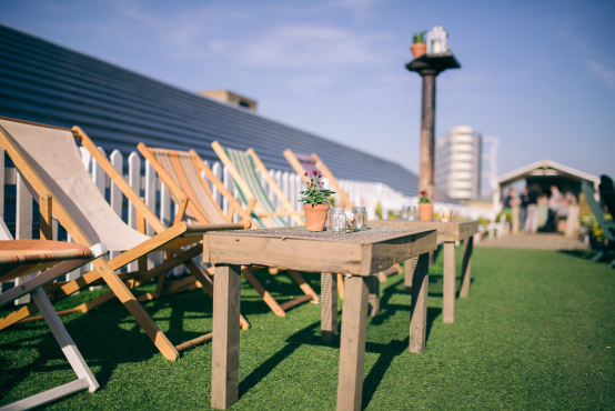 O jardines en azoteas, como el Dalston Roof Garden, sólo abiertos obviamente en verano.