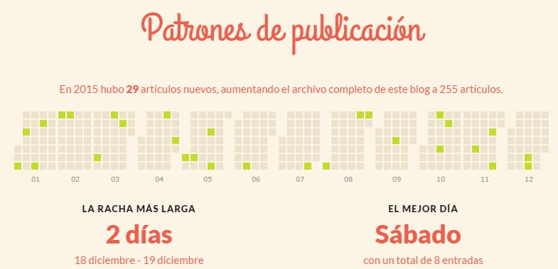 Me propuse dedicar algo más de tiempo al blog, o eso quise creer, porque al final sólo publiqué 4 posts más que en 2014 (25 vs 29). Report.