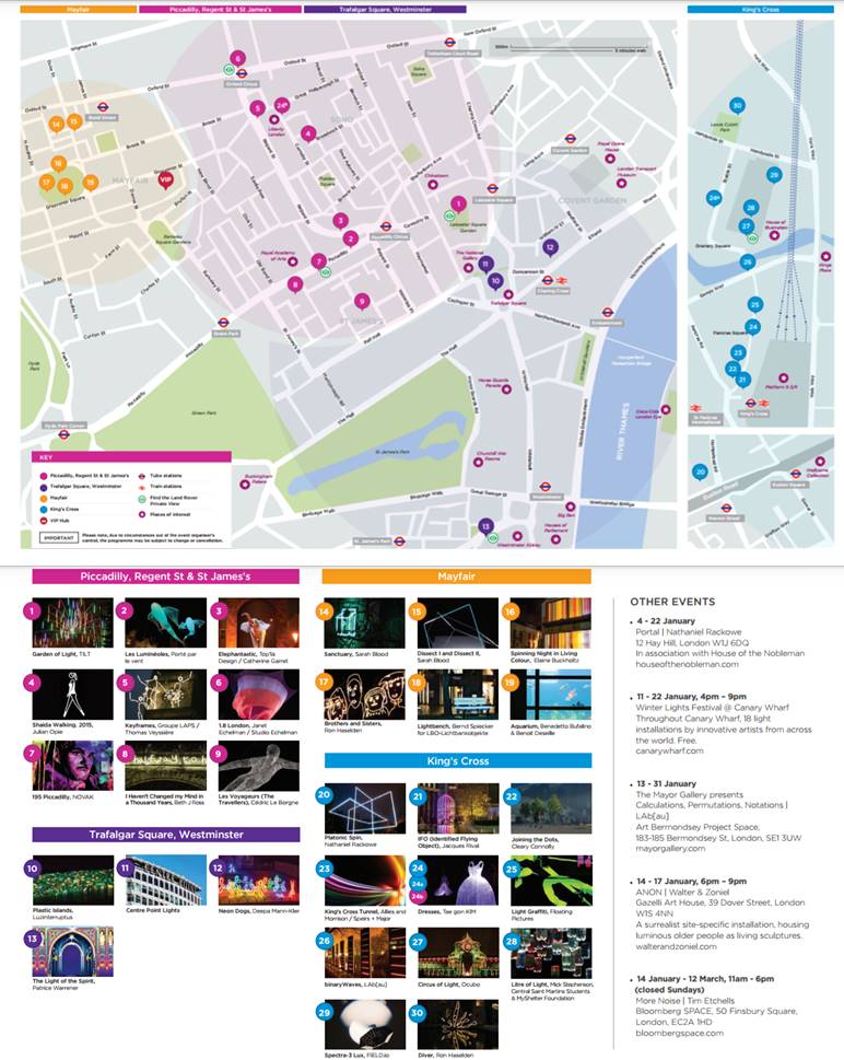 Pero sin duda la sorpresa del viaje fue toparme con un evento inesperado, el Lumiere London Festival. Calles como Regent Street o Picadilly Street, así como otras áreas (Kings Cross, Mayfair) se vieron invadidas por gente para disfrutar de los diferentes espectáculos de luz y sonido, proyecciones sobre las fachadas (especialmente impresionante la de la Abadía de Westminster), animales en 3d, animaciones, estatuas de luz,.. Realmente mágico.