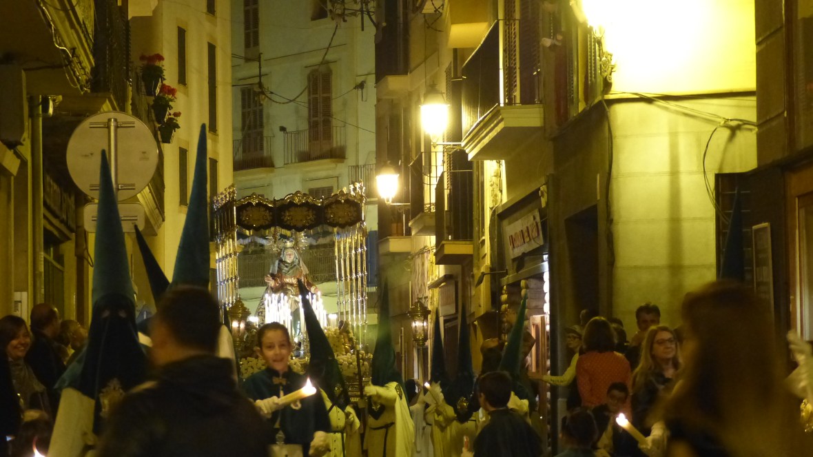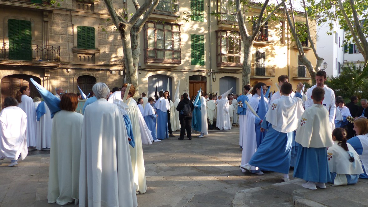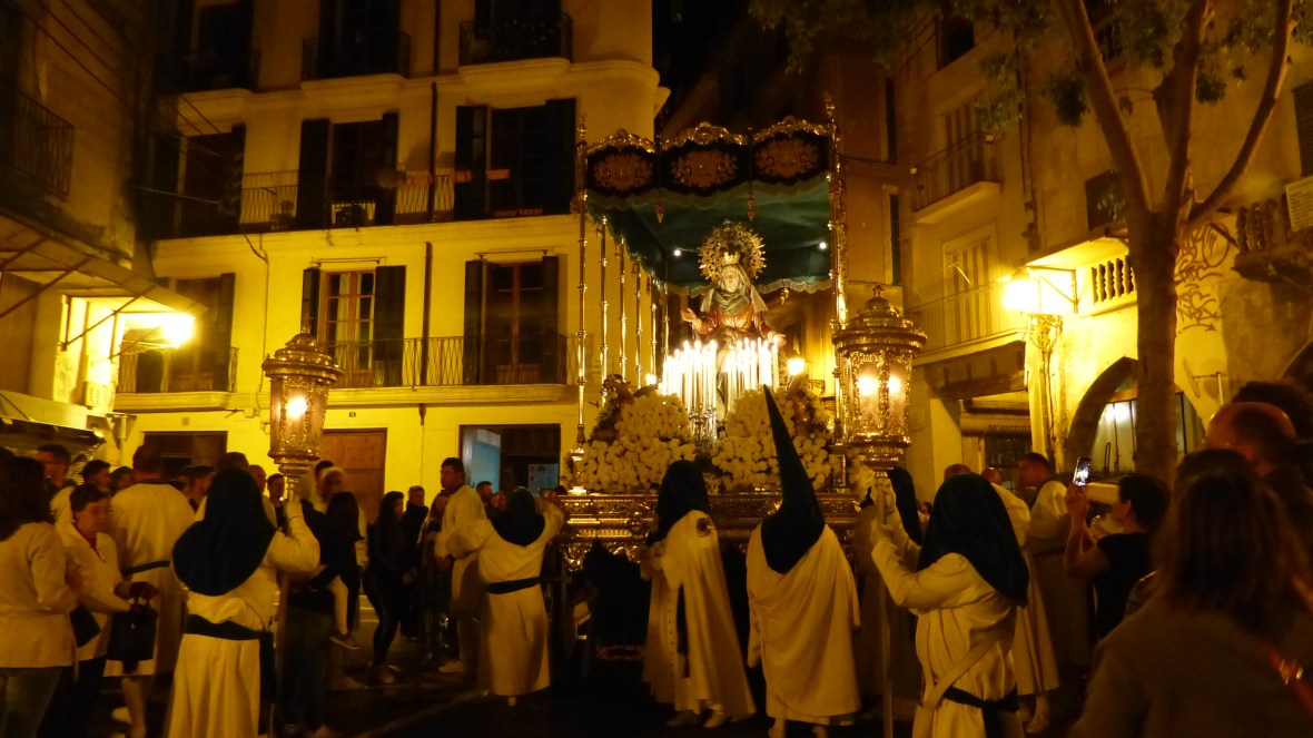 Hola Chela. A mí me da mucha rabia que en los telediarios siempre hacen un repaso por las principales procesiones, o por las más peculiares… y nunca mencionan las de Palma. No existimos. Este año aprovechando las fechas y el buen tiempo estaba repleto de turistas que admiraban con emoción todo lo que estaban viendo. Al menos, aunque vengan principalmente por el sol, aprecian nuestras tradiciones. En la de ayer estaba la reina Sofía, le gusta mezclarse con la gente y vivir la semana santa como una más.