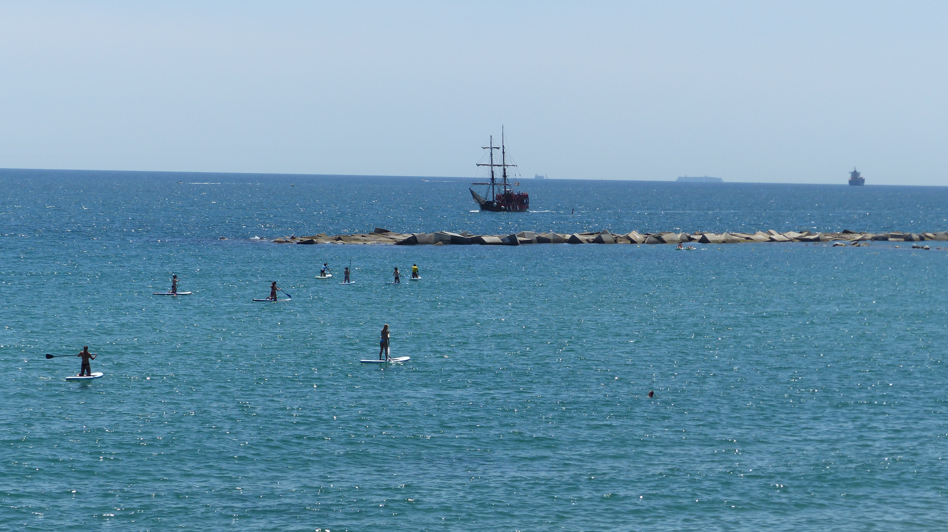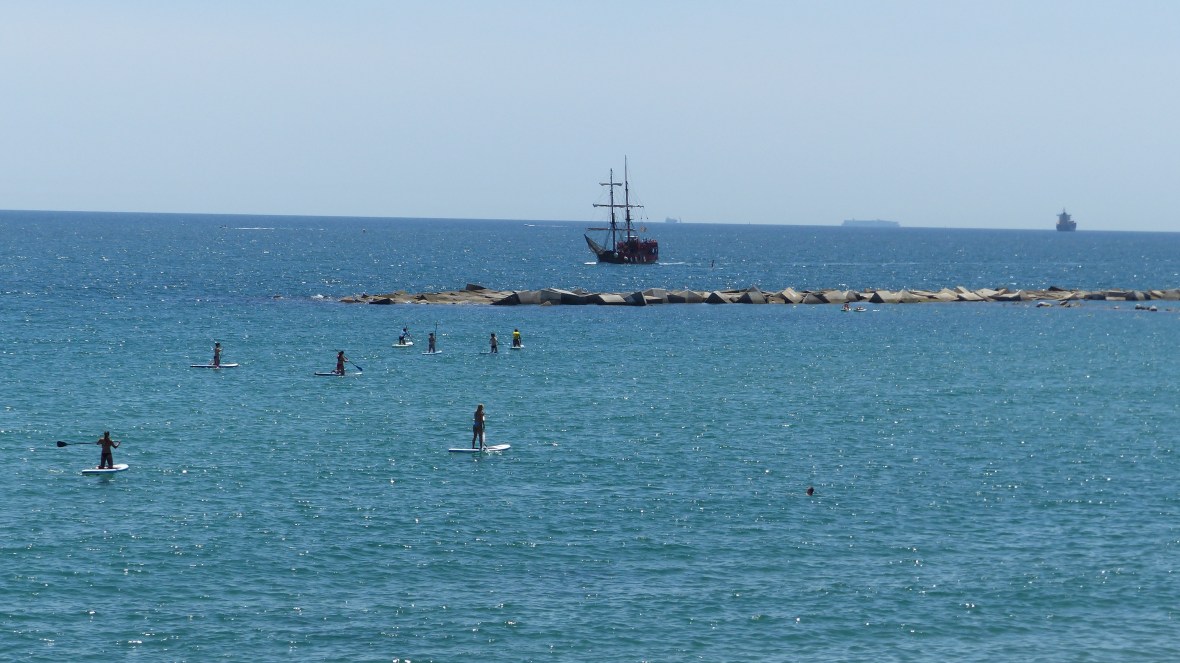 Pasear por la playa de la Barceloneta en un día casi casi veraniego. Comer en Surf House Barcelona.