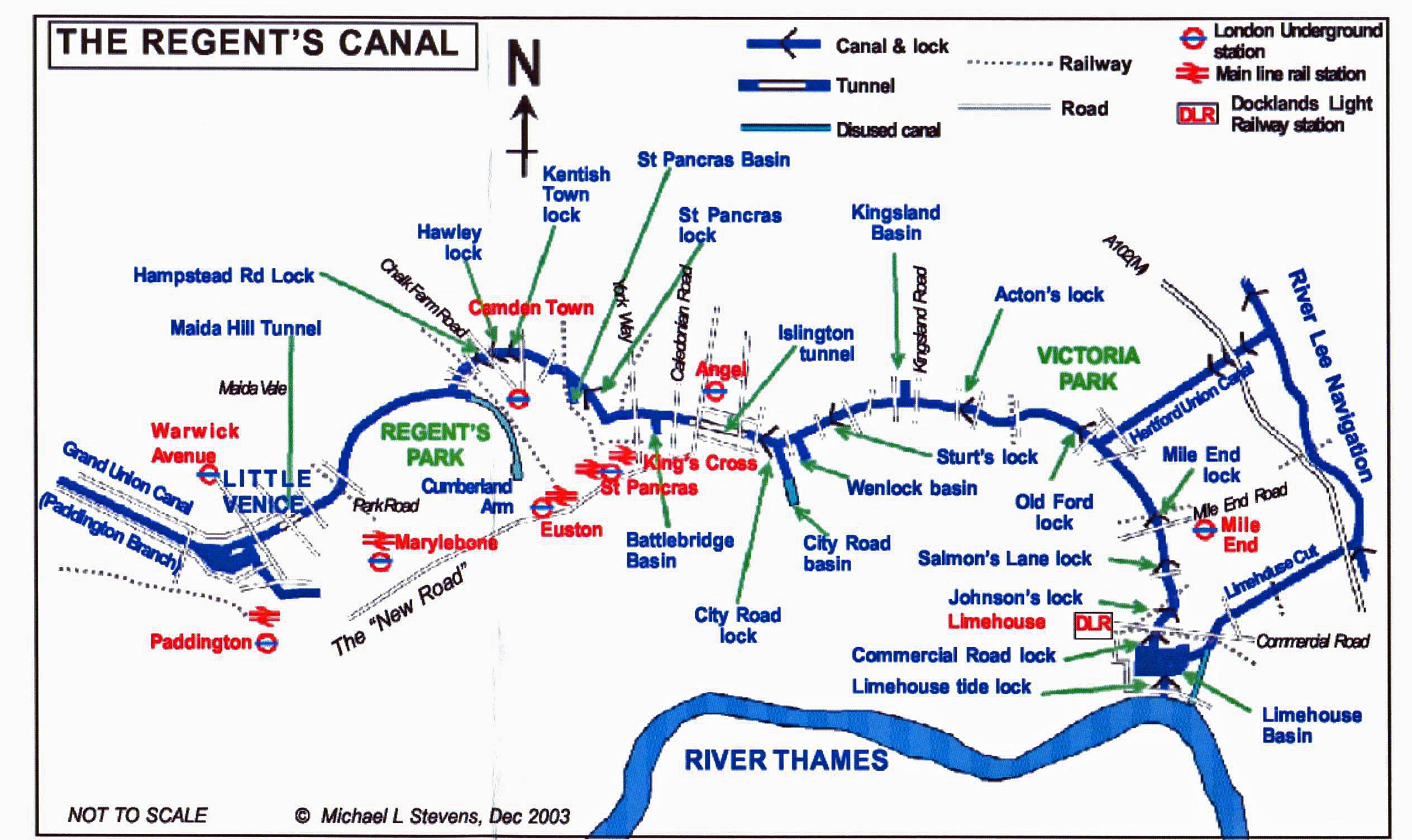 A partir de ahí hay diferentes exclusas con compuertas (llamadas locks) hasta el tramo de Kings Cross – St Pancras, muy de moda ahora.