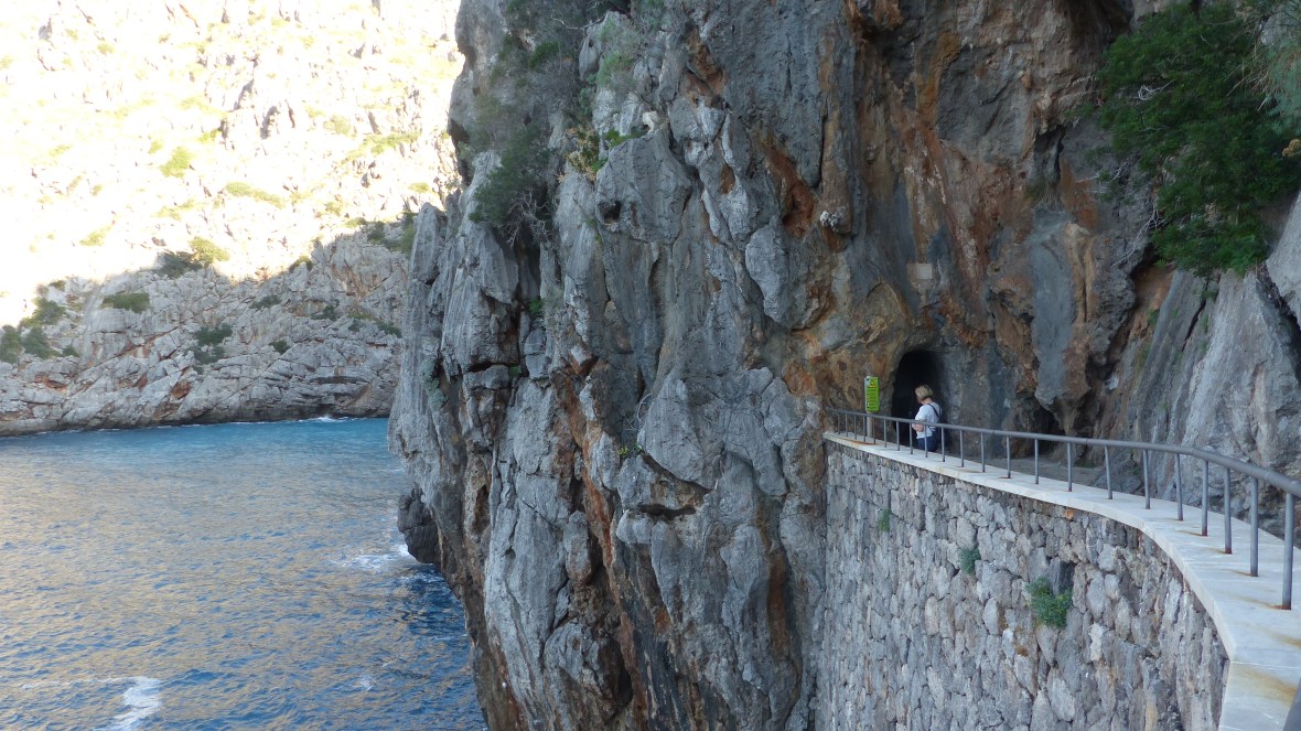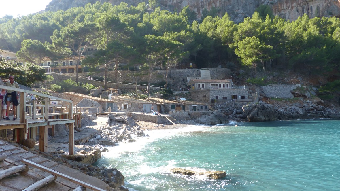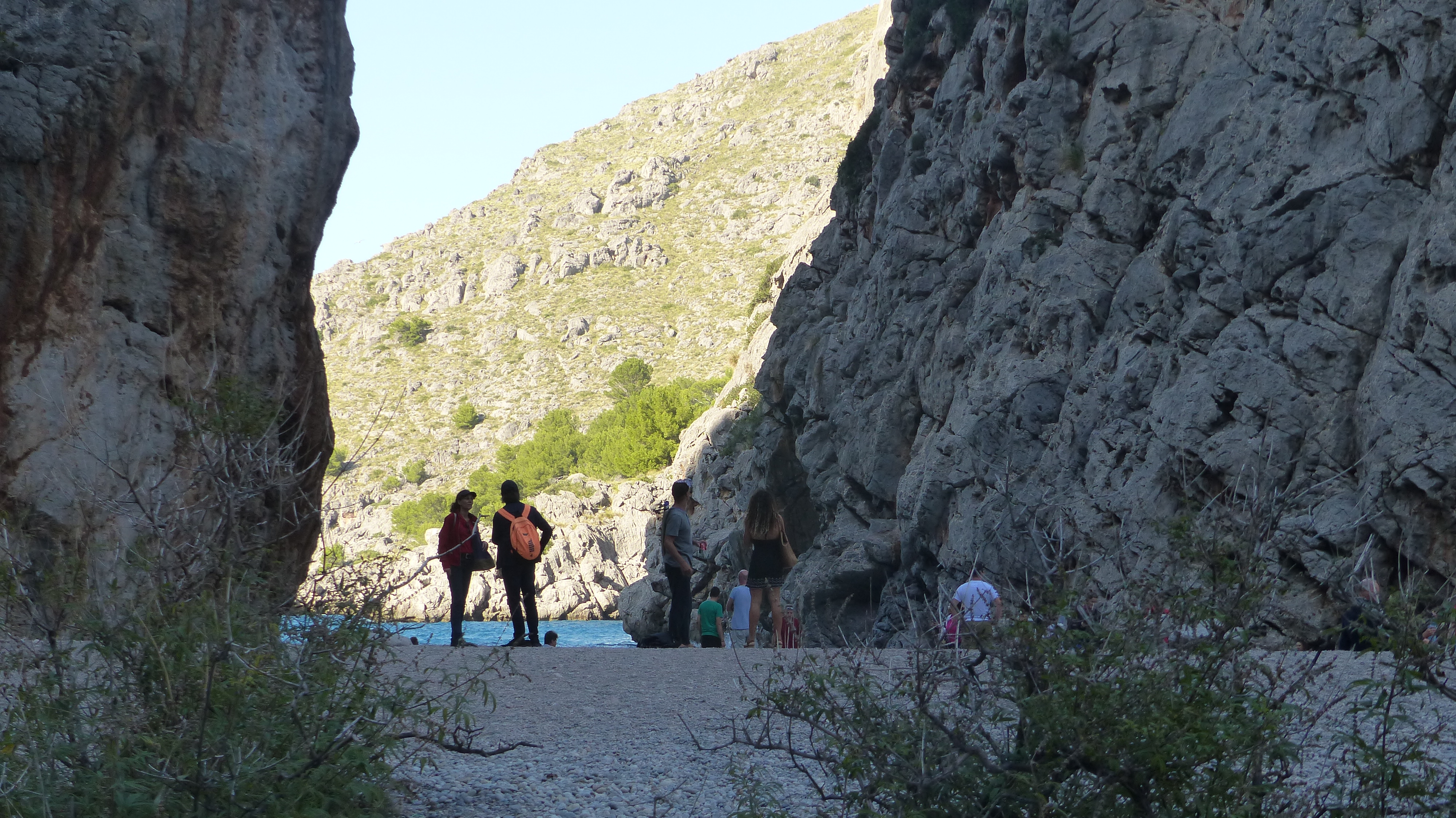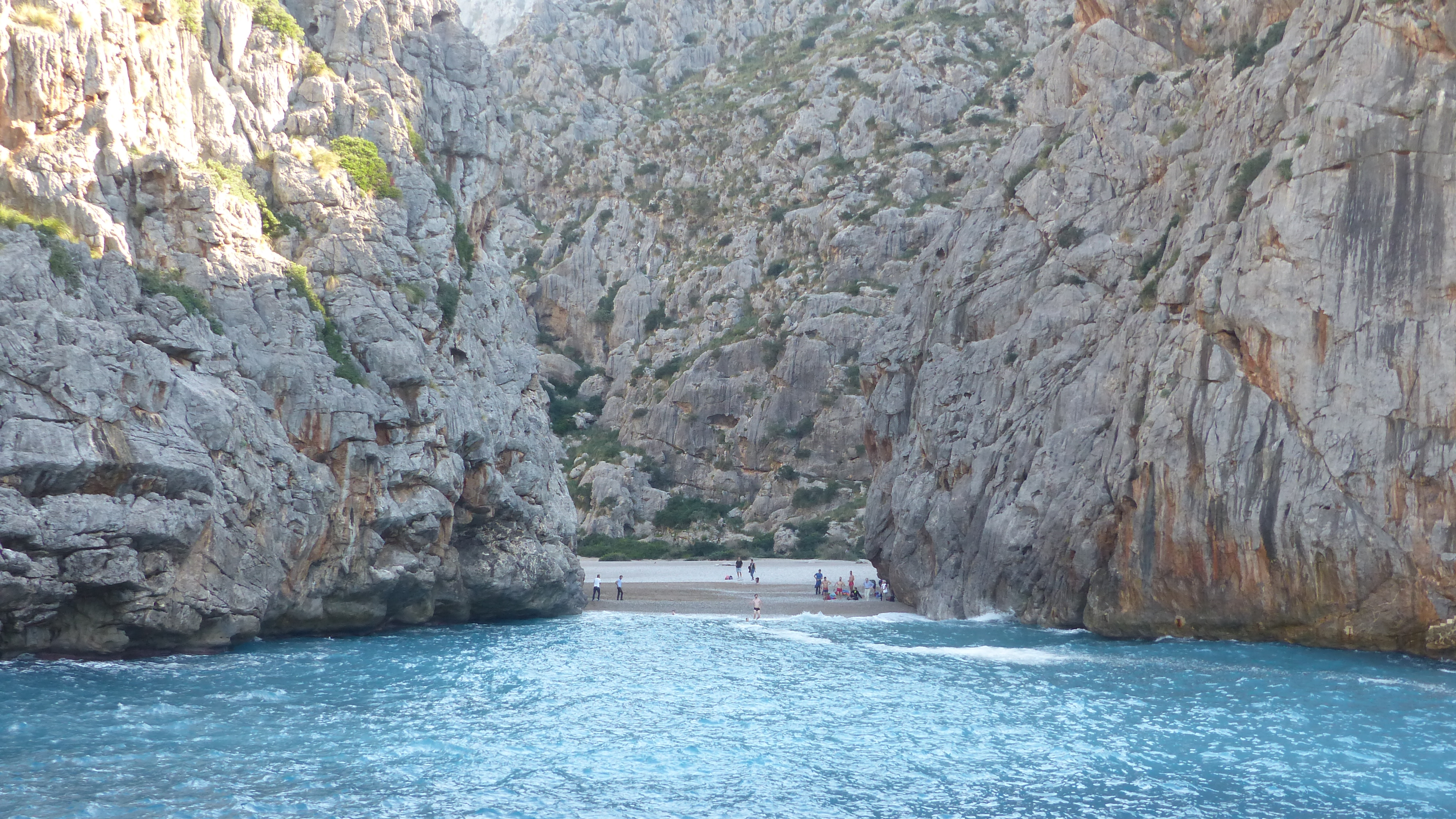 Y desde allí un barco te lleva hasta Sa Calobra pasando a escasos metros de los impresionantes acantilados de roca de la Serra de Tramuntana. Sí, es muy turístico, pero sólo así puedes ver el Puig Major, Cala Tuent y la pequeña playa del Torrent de Pareis desde el mar.