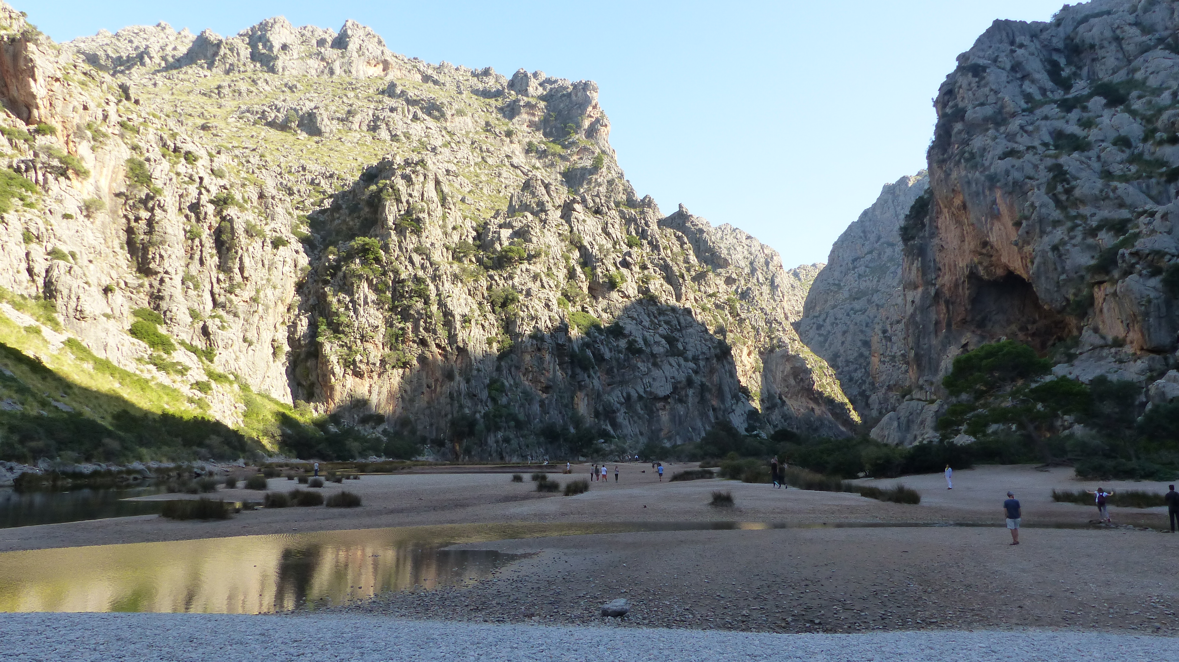 Una vez desembarcas en Sa Calobra por un paseo peatonal, atravesando literalmente la montaña a través de unos estrechos túneles, accedes al paraje incomparable y auditorio natural del Torrent de Pareis, uno de los lugares más mágicos de la isla. Se trata de un cañón natural formado por altas rocas por donde discurre el torrente desemboca en esta pequeña cala de cantos rodados.