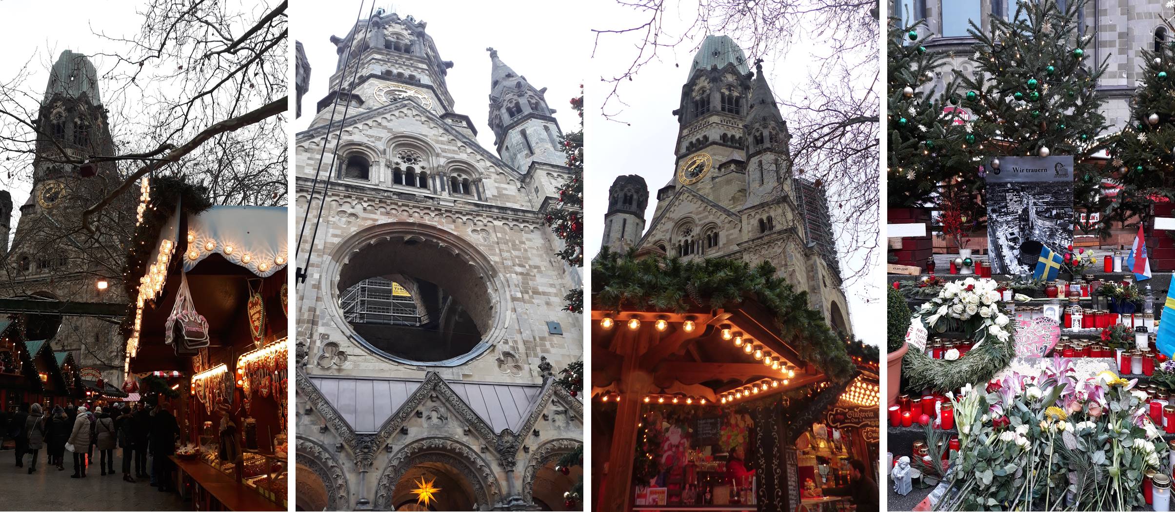 Iglesia memorial del Kaiser Guillermo (Kaiser-Wilhelm-Gedächtnis-Kirche). Este mercado se hace alrededor de la famosa iglesia destruida de la 2ª Guerra Mundial y es donde tuvo lugar el atentado de 2016.