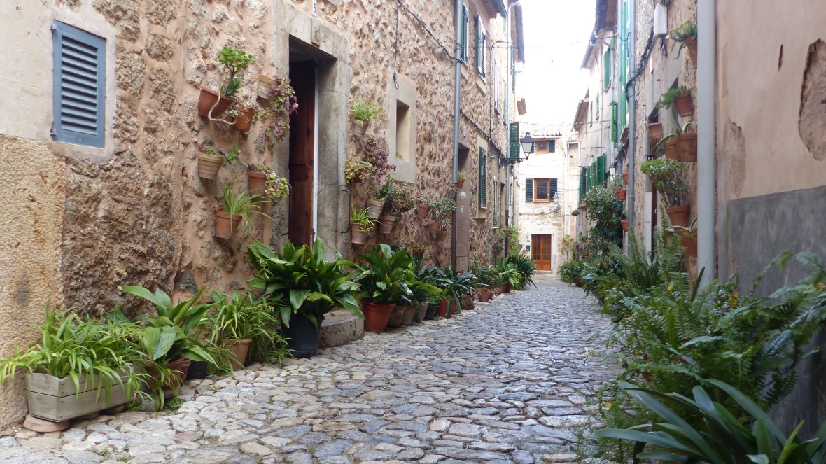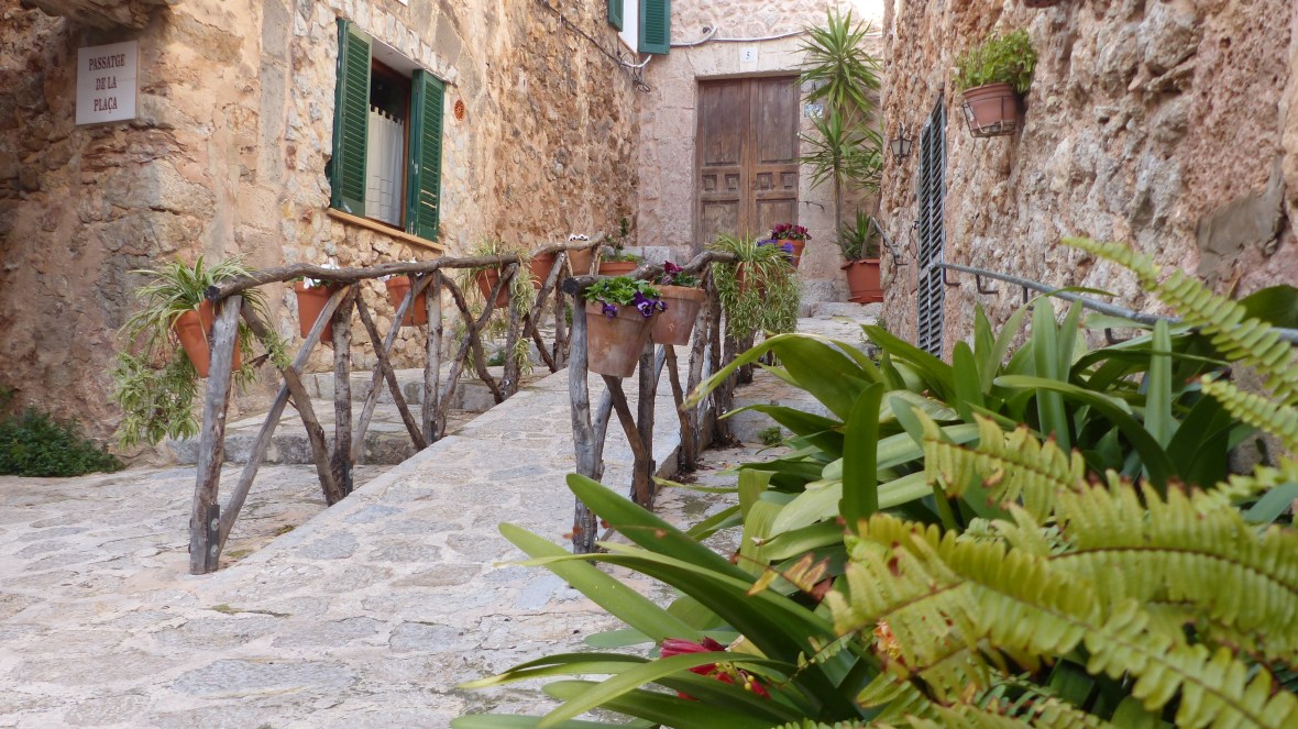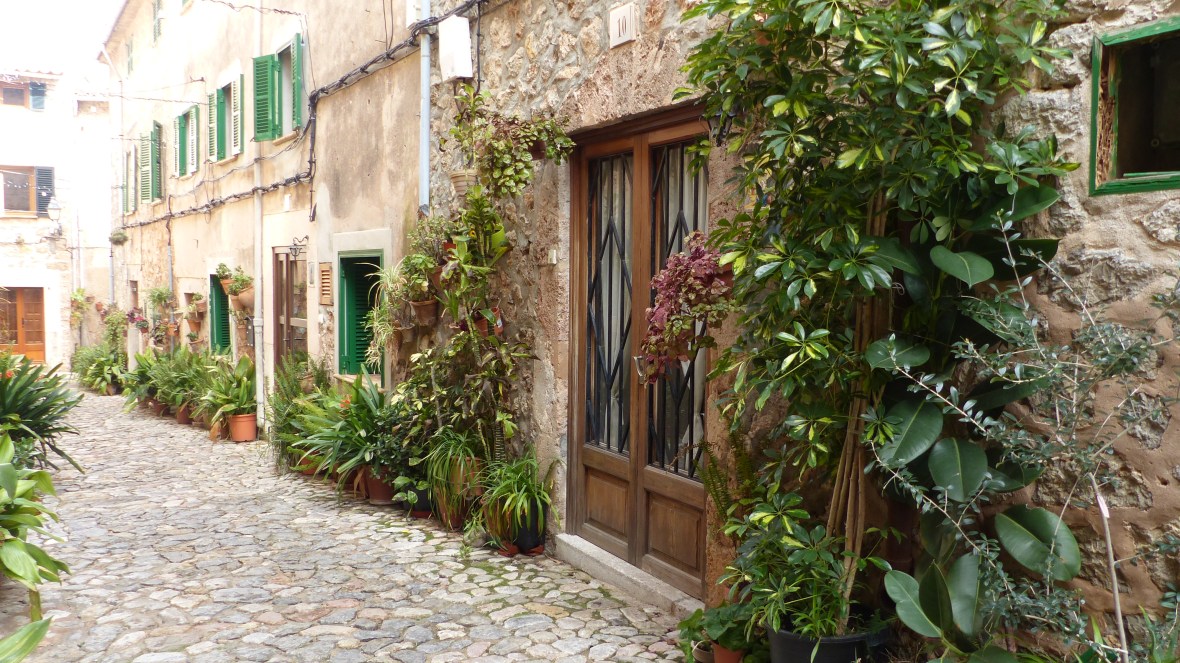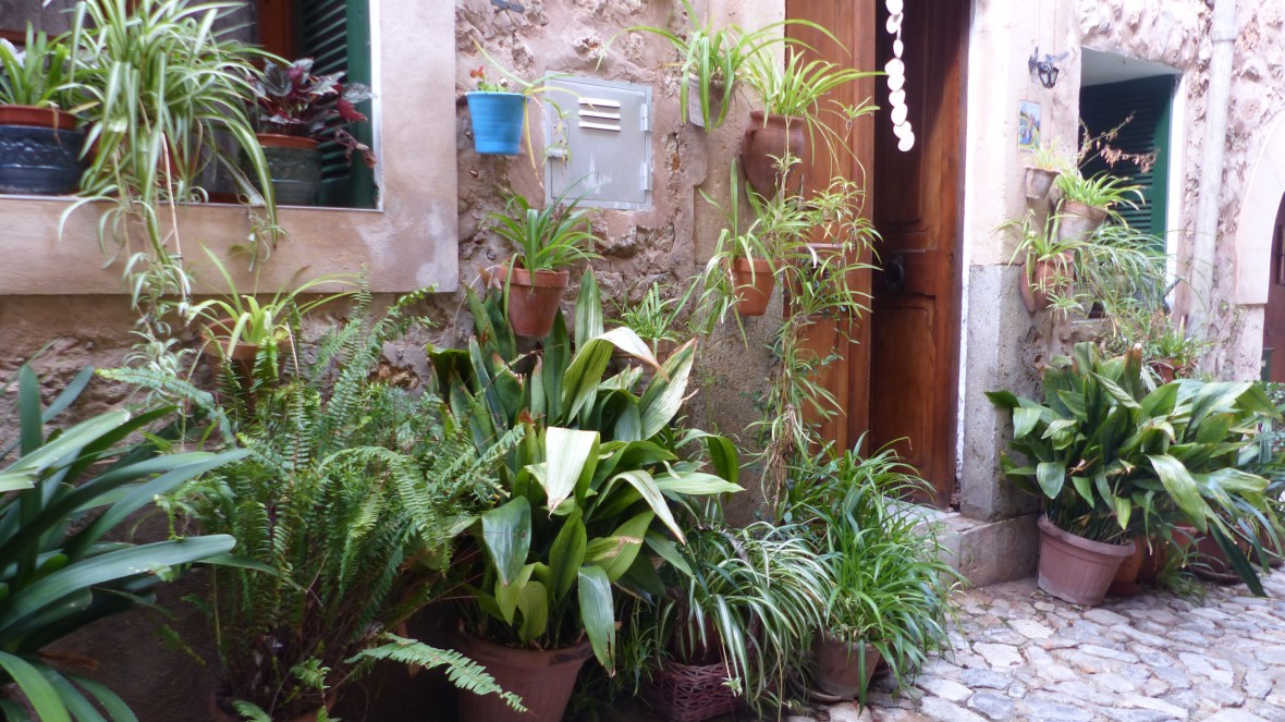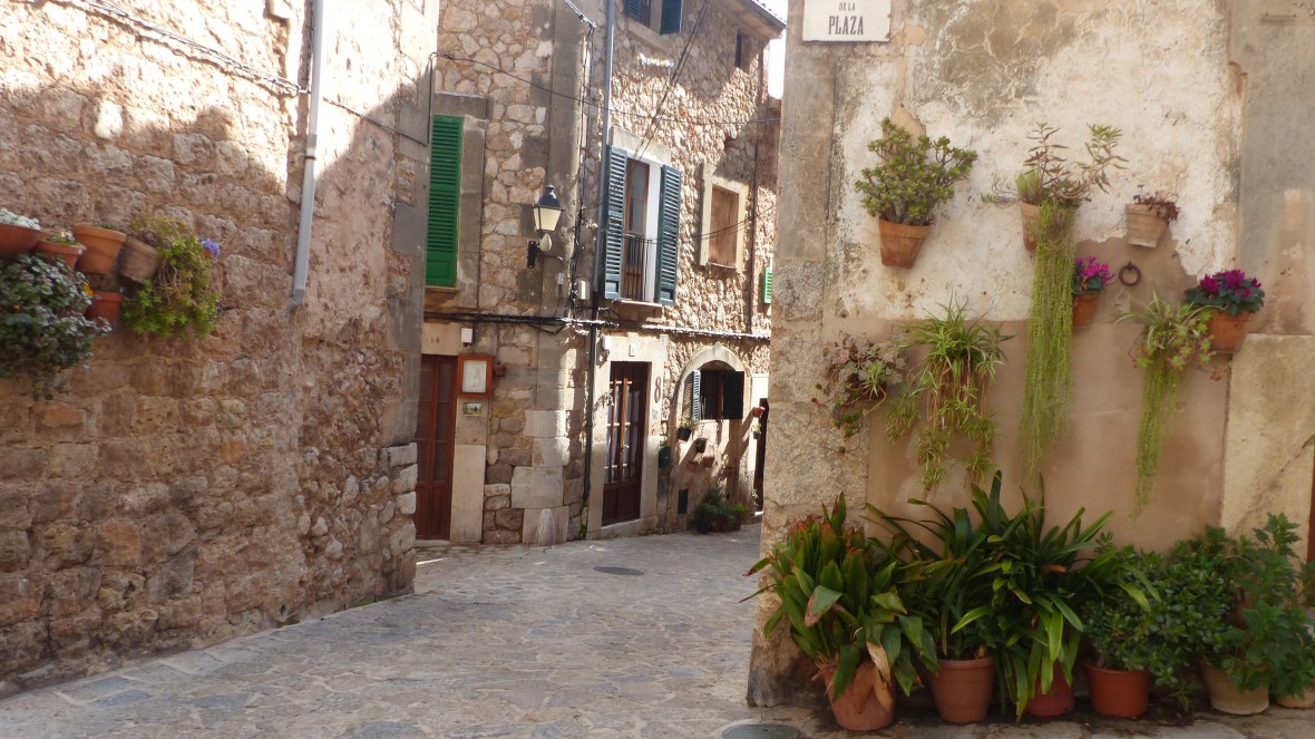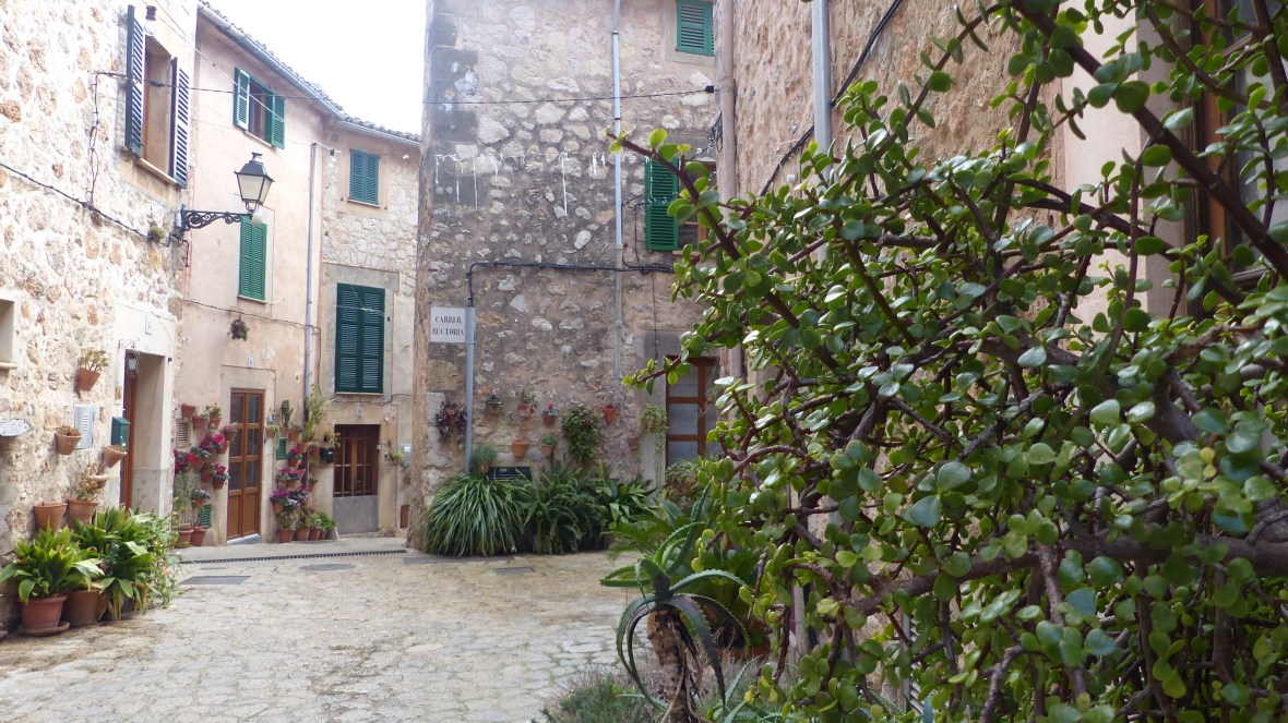 Lo saben los miles de turistas que abarrotan sus adoquinadas calles. Pero muchos, pobres de ellos, se quedan en la calle principal, visitan la Cartuja, donde vivió Chopin, o el jardín del laberinto (qué enorme nos parecía cuando éramos niños y jugábamos al escondite…!) y no llegan a conocer la verdadera Valldemossa, la que se descubre sin mapa, vagando sin rumbo, subiendo empinadas cuestas, girando esquinas y encontrando de pronto pequeñas plazoletas y callejones llenos de plantas y cuidadas flores.