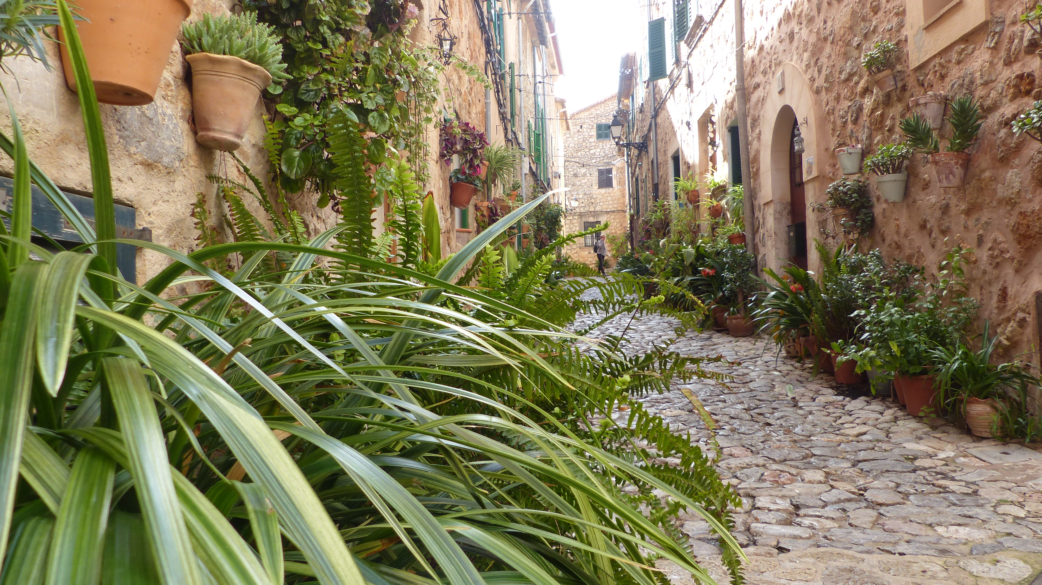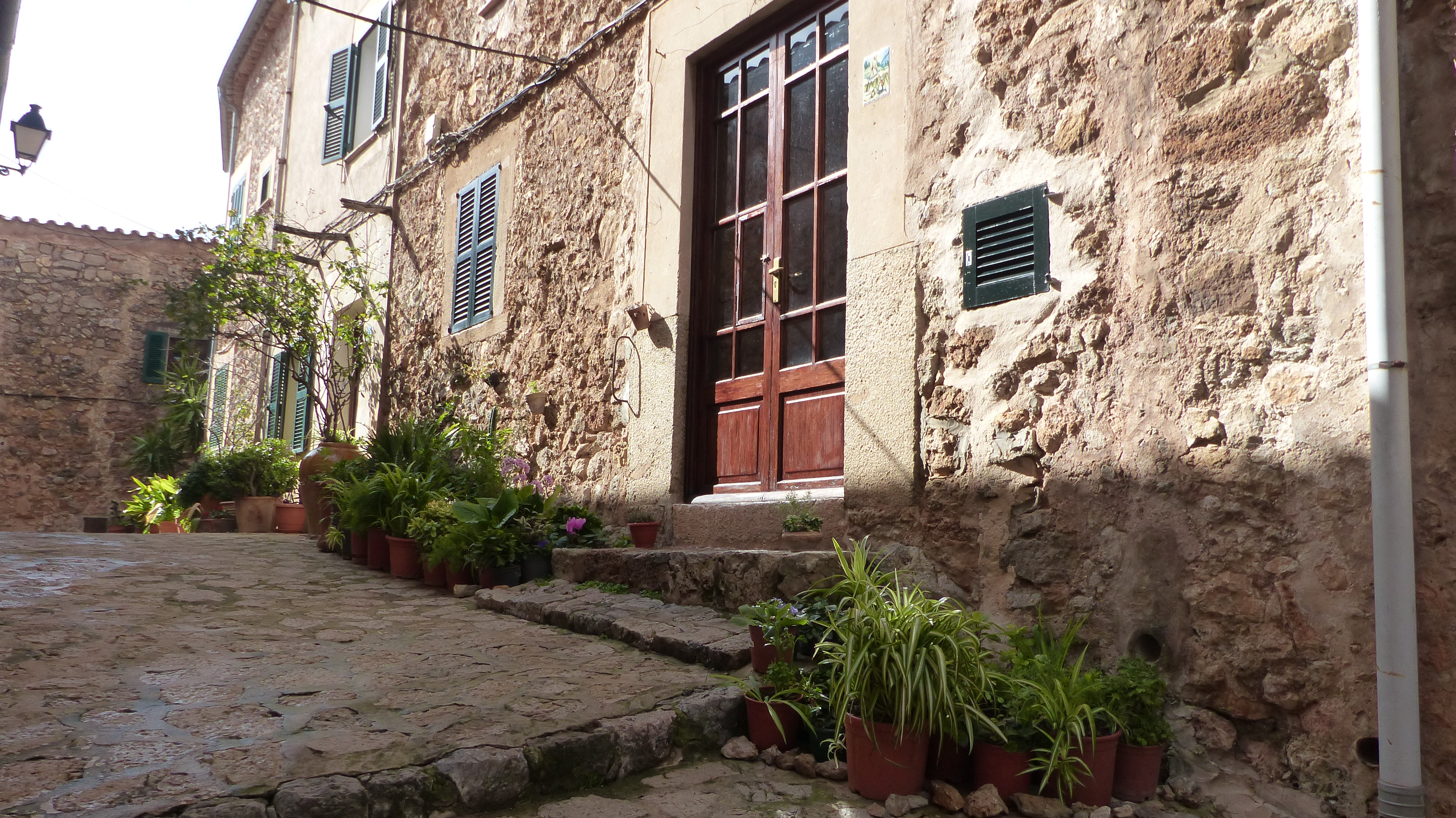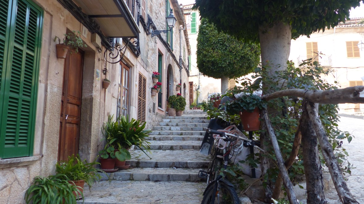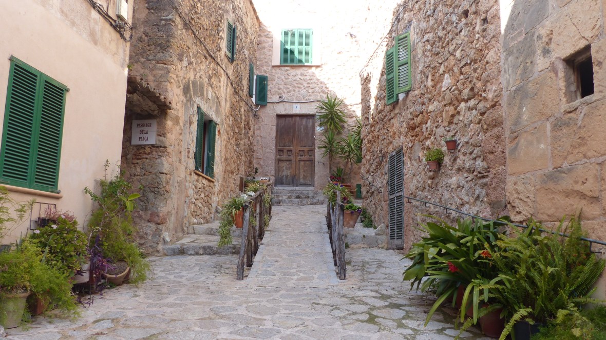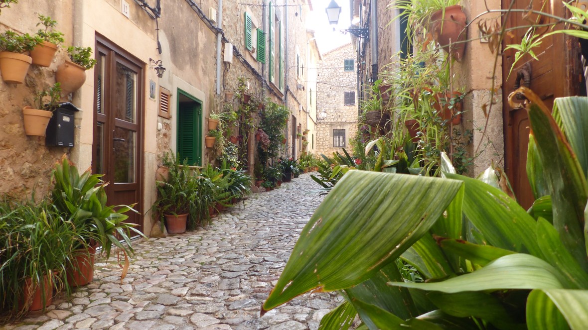 Lo saben los miles de turistas que abarrotan sus adoquinadas calles. Pero muchos, pobres de ellos, se quedan en la calle principal, visitan la Cartuja, donde vivió Chopin, o el jardín del laberinto (qué enorme nos parecía cuando éramos niños y jugábamos al escondite…!) y no llegan a conocer la verdadera Valldemossa, la que se descubre sin mapa, vagando sin rumbo, subiendo empinadas cuestas, girando esquinas y encontrando de pronto pequeñas plazoletas y callejones llenos de plantas y cuidadas flores.