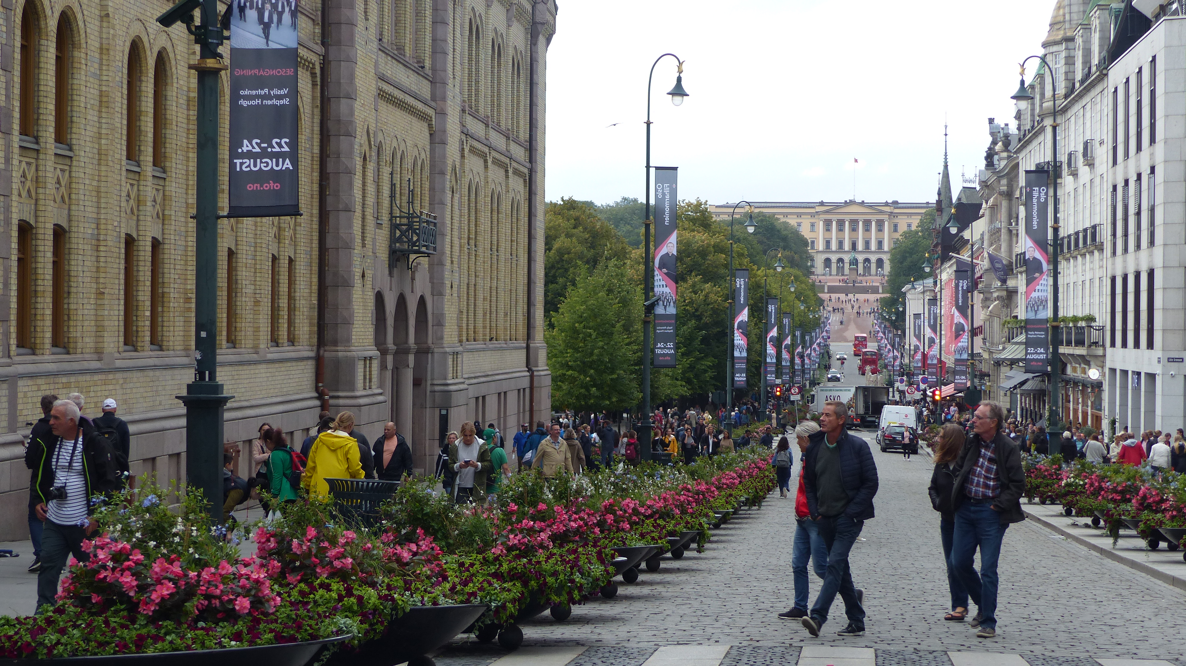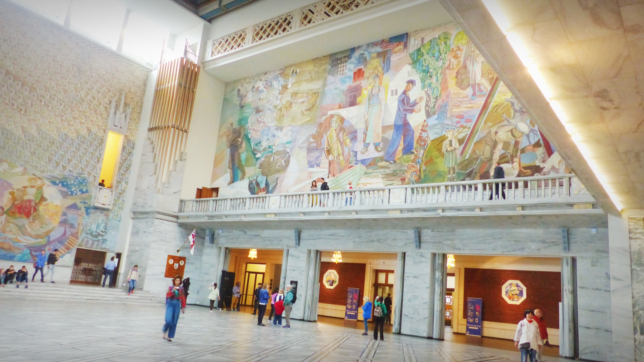 Oslo se puede visitar en poco tiempo, un día y medio basta si no dedicas mucho tiempo a museos. Básicamente, consta de dos pequeñas bahías, separadas por la península donde están las casas más antiguas y la fortaleza Akershus Festning. En una de las bahías el Aker Brygge, el Nobel Peace Center y el Ayuntamiento (Rådhuset) en medio, imponente con sus dos torres de ladrillo, que alberga en su hall interior una impresionante colección de enormes murales. Como curiosidad, cada hora en punto, toca con sus campanas una canción elegida por los ciudadanos en su página web. En la otra bahía el edificio de la Ópera y toda la moderna Oslo. La peatonal Karl Johans Gate cruza la ciudad desde la estación central hasta el palacio real, y a su largo se despliega toda una cuadrícula comercial, Torggata, Stortorvet, Prinsens Gate, Nedre Slottsgate, etc…