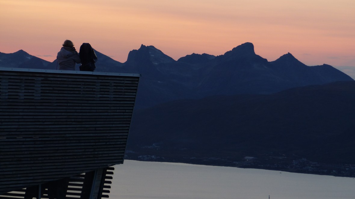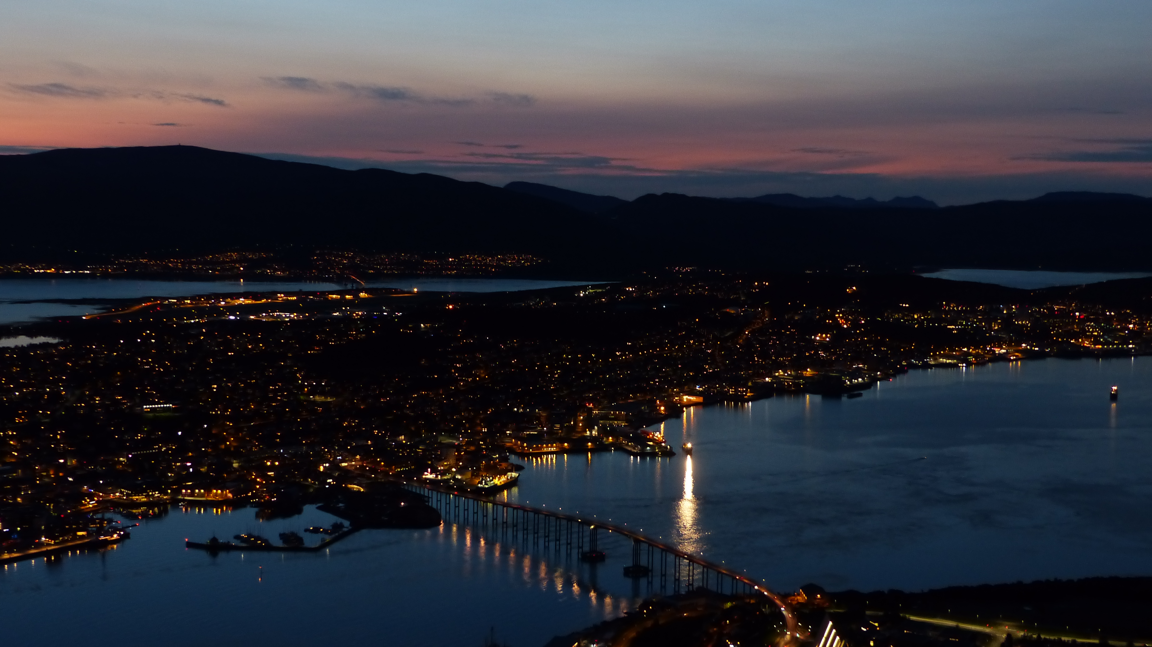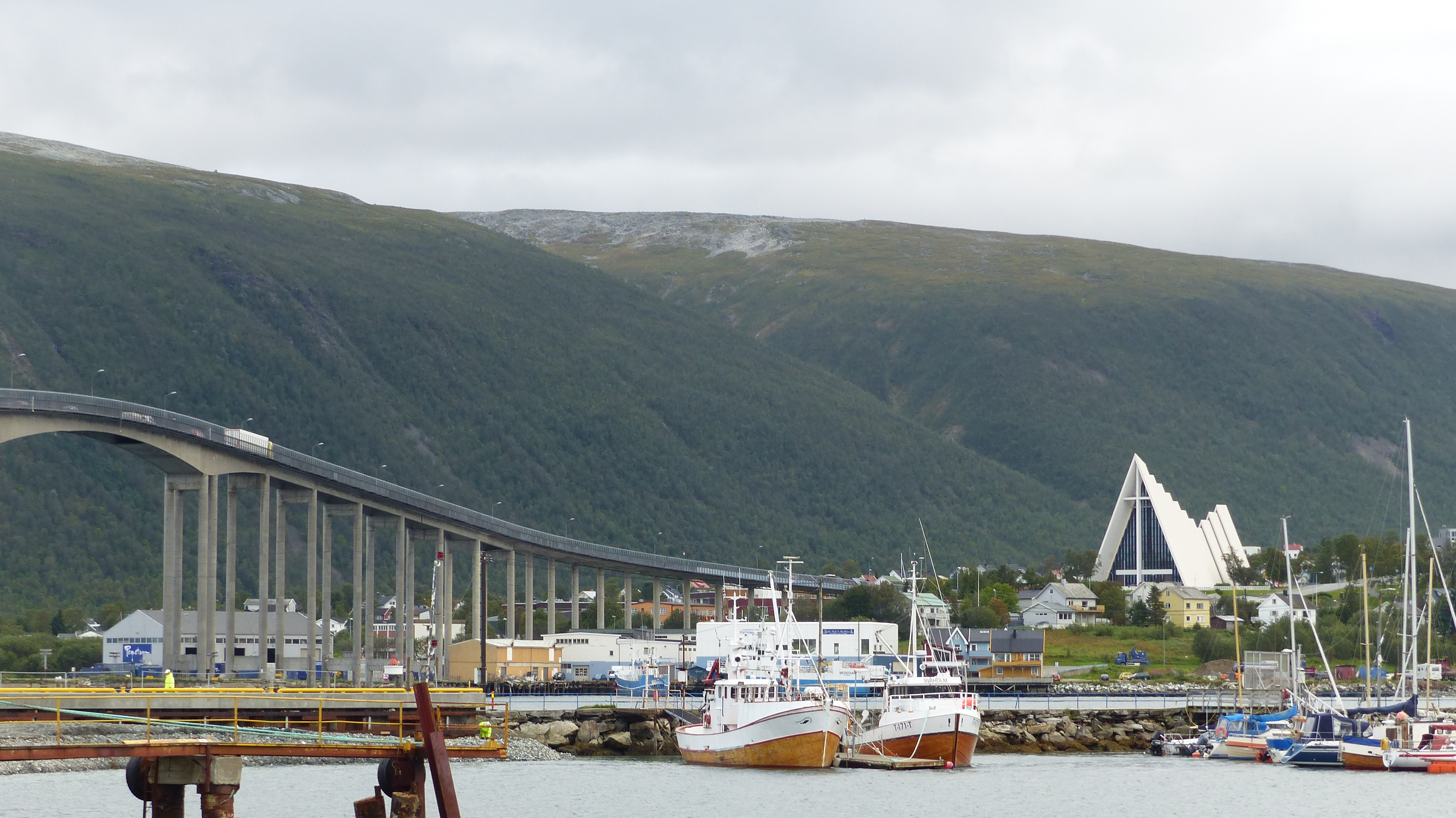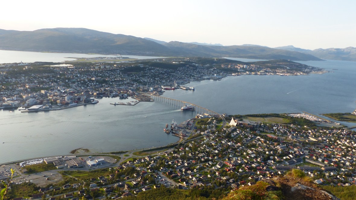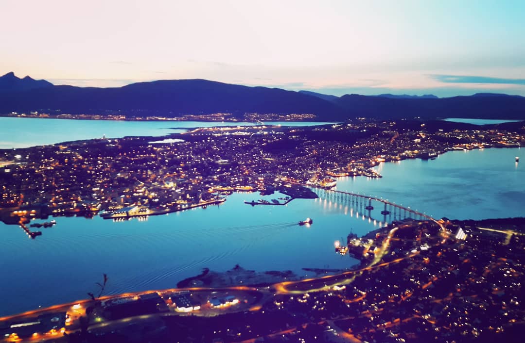 Ya por la mañana la ciudad era otra. Había mucha actividad, en las tiendas, en el puerto… El centro conserva una multitud de casitas de madera, entre ellas se puede ver la casa donde Amundsen se hospedó antes de zarpar a sus expediciones al polo norte. Visita el Museo Polar para conocer todos los entresijos de esas exploraciones. No dejes de cruzar el puente Bruvegen para llegar al continente y visitar la Catedral del Ártico (la catedral más al norte del mundo) y subir en el teleférico (el Fjellheisen) a ver la vistas de la ciudad. Otra vez, como en Bergen, el mejor momento al atardecer, ver zarpar el Hurtigruten pasando por debajo del puente y ver ponerse el sol tras las montañas de la isla de Senja es una experiencia mágica.