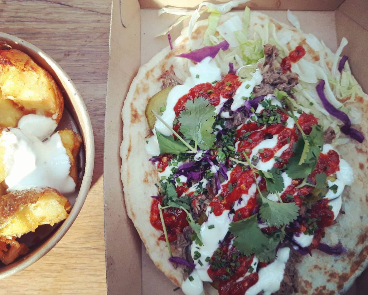 Tras un vuelo con Ryanair (48 euros ida y vuelta) llego a Stansted. Es alucinante cuando sobrevuelas Londres y distingues desde el avión todos los monumentos, los parques y las curvas del Támesis. De mi experiencia de las últimas veces, sin duda he aprendido que hay que llevar el pasaporte, las colas son infinitamente más cortas y más rápidas que las del DNI. El tren Stansted Express (30 euros ida y vuelta) me deja en 45 minutos en Liverpool Street y una vez salgo a la calle comienzo a notar el ajetreo de la gran ciudad. Gente caminando rápido de aquí a allá, tráfico,… Mucho sol y calor. 24 grados. Manga corta y sandalias. Me siento emocionada, hace muchos años que no estoy en Londres con buen tiempo, últimamente siempre ha sido en diciembre y enero, que también tiene su encanto, pero ya tenía ganas. En 5 minutos a pie siguiendo Middlesex Street me planto en el hotel, el nuevo Travelodge London City, recién inaugurado, nuevo, amplio y luminoso, impecable. 276 euros (3 noches) sin desayuno. Dejo las cosas y me lanzo a mi lugar favorito, Spitalfields Market. Compruebo que han hecho algunos cambios en la zona de comidas, algunos de los puestos que conocía en The Kitchens ya no están (por ejemplo Berber & Q…) pero hay otros con muy buena pinta. Está bien que vayan rotando, así tienes oportunidad de probar cosas diferentes. Estoy muerta de hambre y me pido en Flank un wrap de pita con una deliciosa carne deshilachada de ternera ahumada, col, pepinillo, cilantro, crema agria y salsa picante. Acompañado de un bol de extraordinariamente crujientes gajos de patata y alioli. 17 euros.