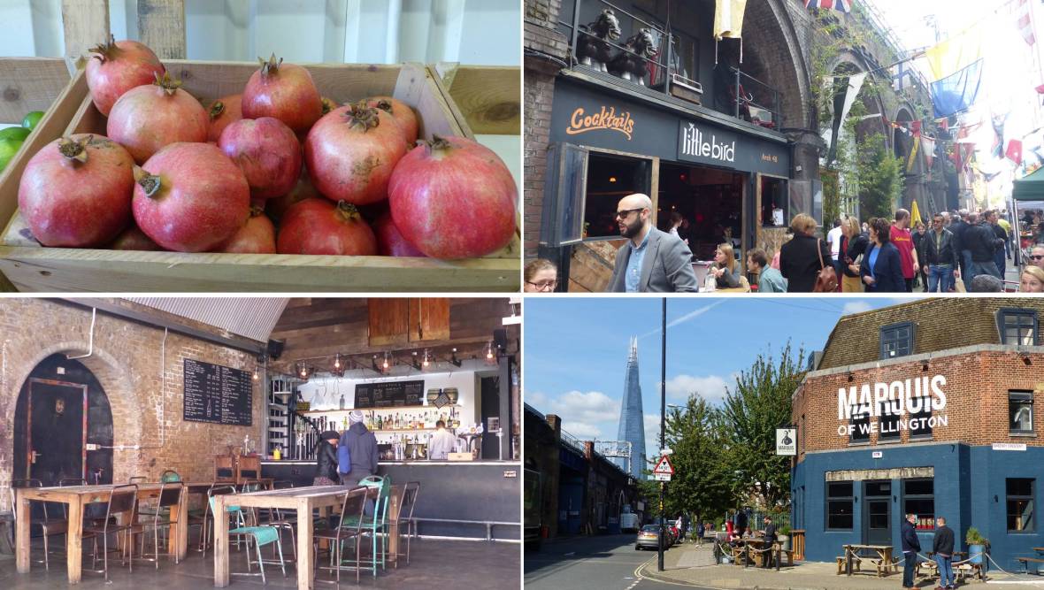 Vuelvo a Spitalfields Market, porque hoy sí o sí tengo que comprar los encargos. Después cojo un autobús, el 47, que me lleva, atravesando London Bridge, hasta el barrio de Bermondsey, donde en los arcos bajo las vías del tren empieza otra famosa ruta gastronómica del sureste de la ciudad. Comienzo en el Spa Terminus con una serie de pequeños productores de quesos, vinos, frutas,.. que venden su mercancía en un par de esos almacenes. Poco cosa, me esperaba algo más grande. A sólo unos pasos empieza el Ropewalk en el Maltby Street Market. La mezcla de aromas de comidas del mundo inunda el pequeño callejón, estrecho y corto pero lleno de puestos y mesas para sentarse. Imposible decidirse por algo, mexicano, vietnamita, italiano, africano, waffles, salchichas, Scottish eggs, un oyster and wine bar,… Finalmente mis ojos se van a unos sandwiches de grilled cheese que están prensando con unas planchas de mano, The Cheese Truck. Me pido uno de cheddar y cebolla, una delicia indescriptible. Me tomo después un café en Craft Coffee. Todo por 10 euros. En un extremo del callejón está Lassco, una espectacular tienda de muebles antiguos y cerámicas.
