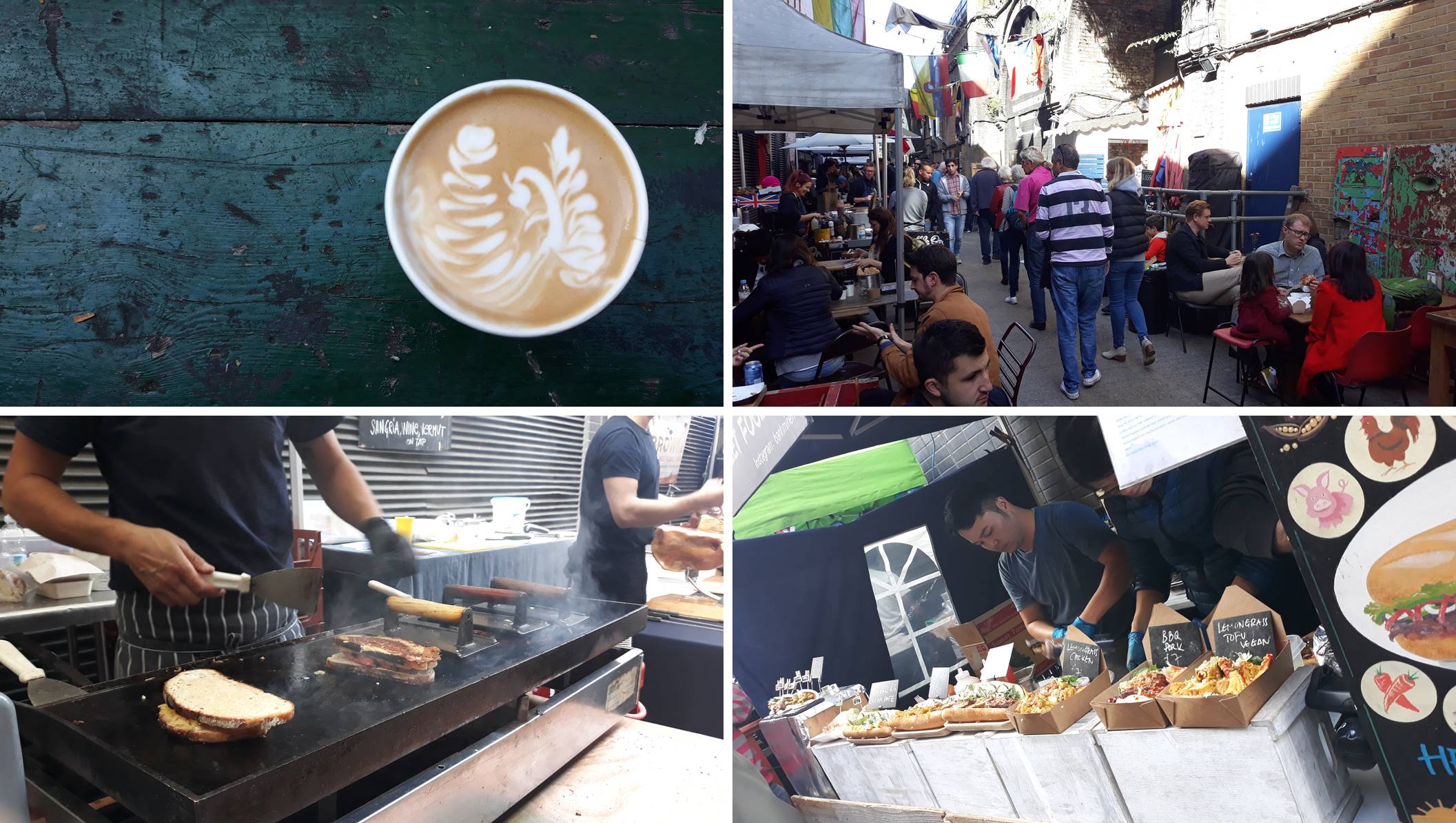 Me levanto tarde y voy a comprar en el Black Sheep Coffee, un puesto justo en la salida del metro de Aldgate, un café y un bollo para llevar. Me lo llevo al hotel y hago la maleta. Salgo de camino a Liverpool Street para tomar el tren de vuelta al aeropuerto atravesando el Petticoat Lane Market. Una vez en Stansted, no puedo no comer en mi querido Leon, siempre lo dejo para el aeropuerto, una caja de albóndigas marroquíes por 8 euros