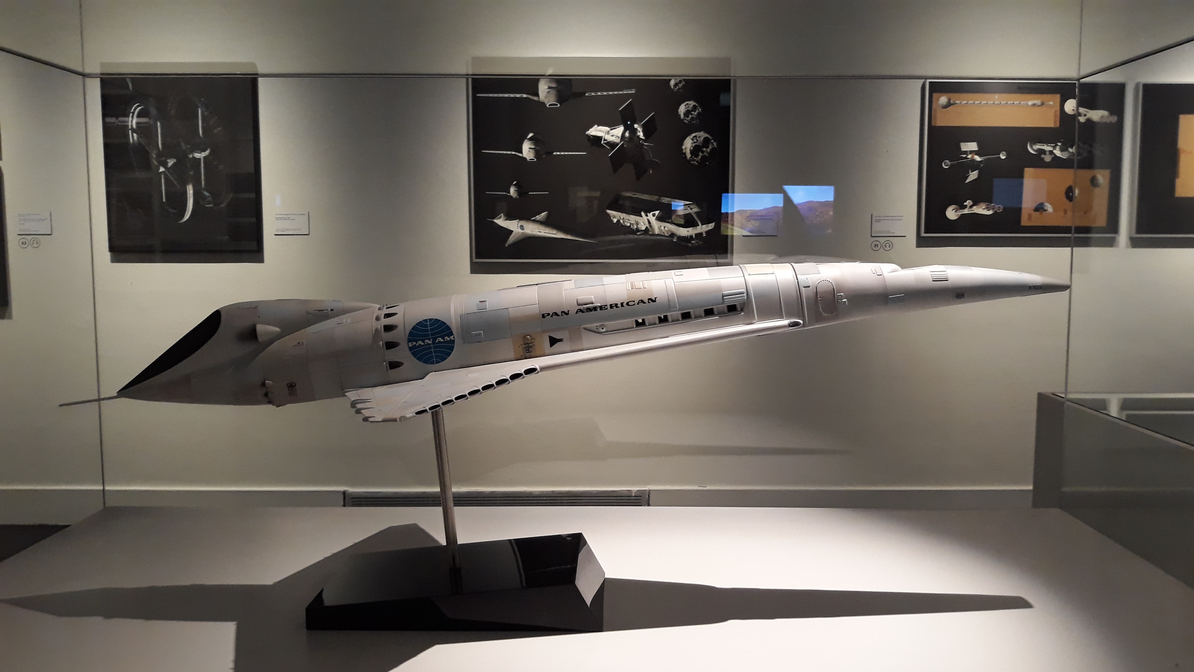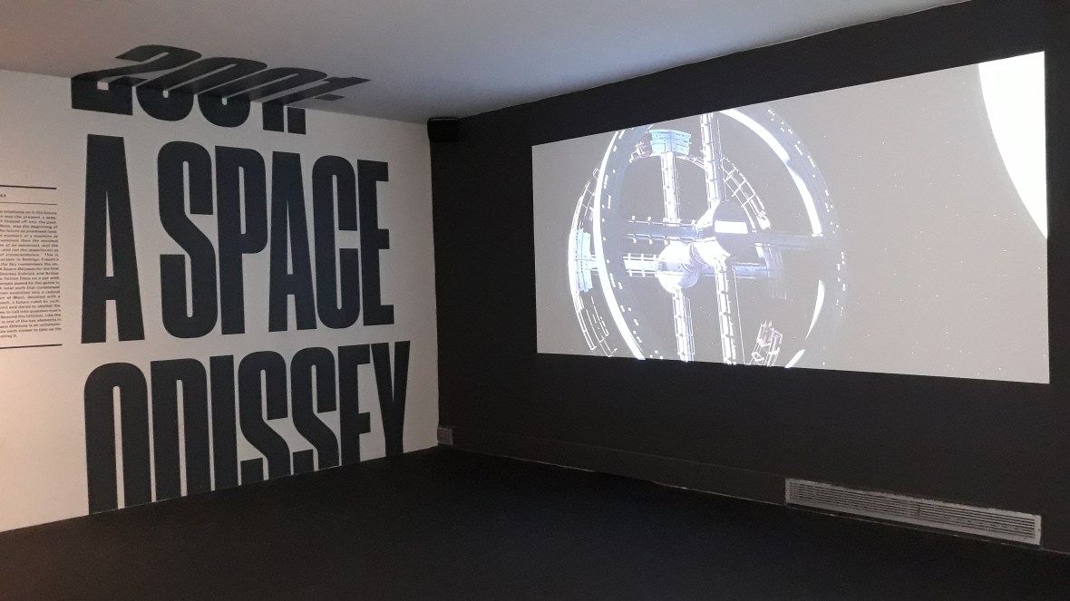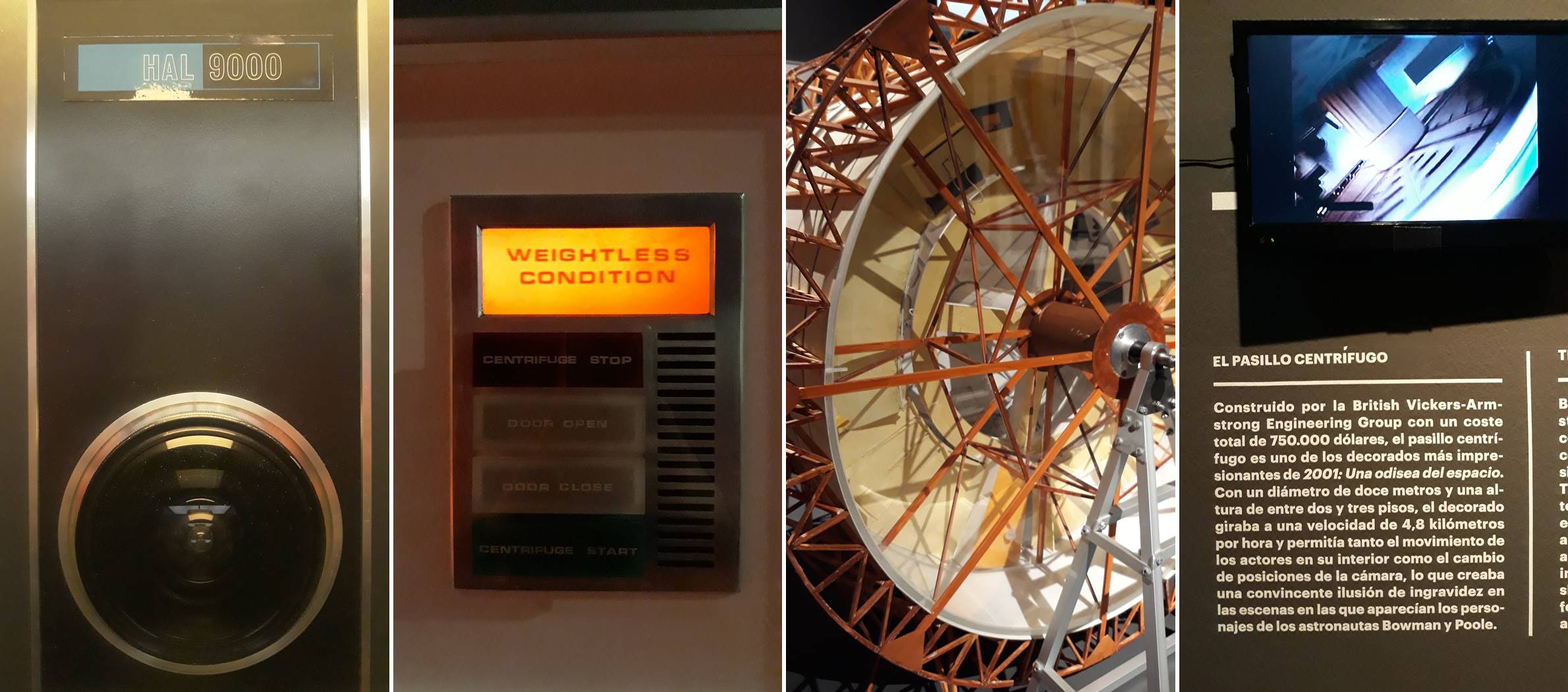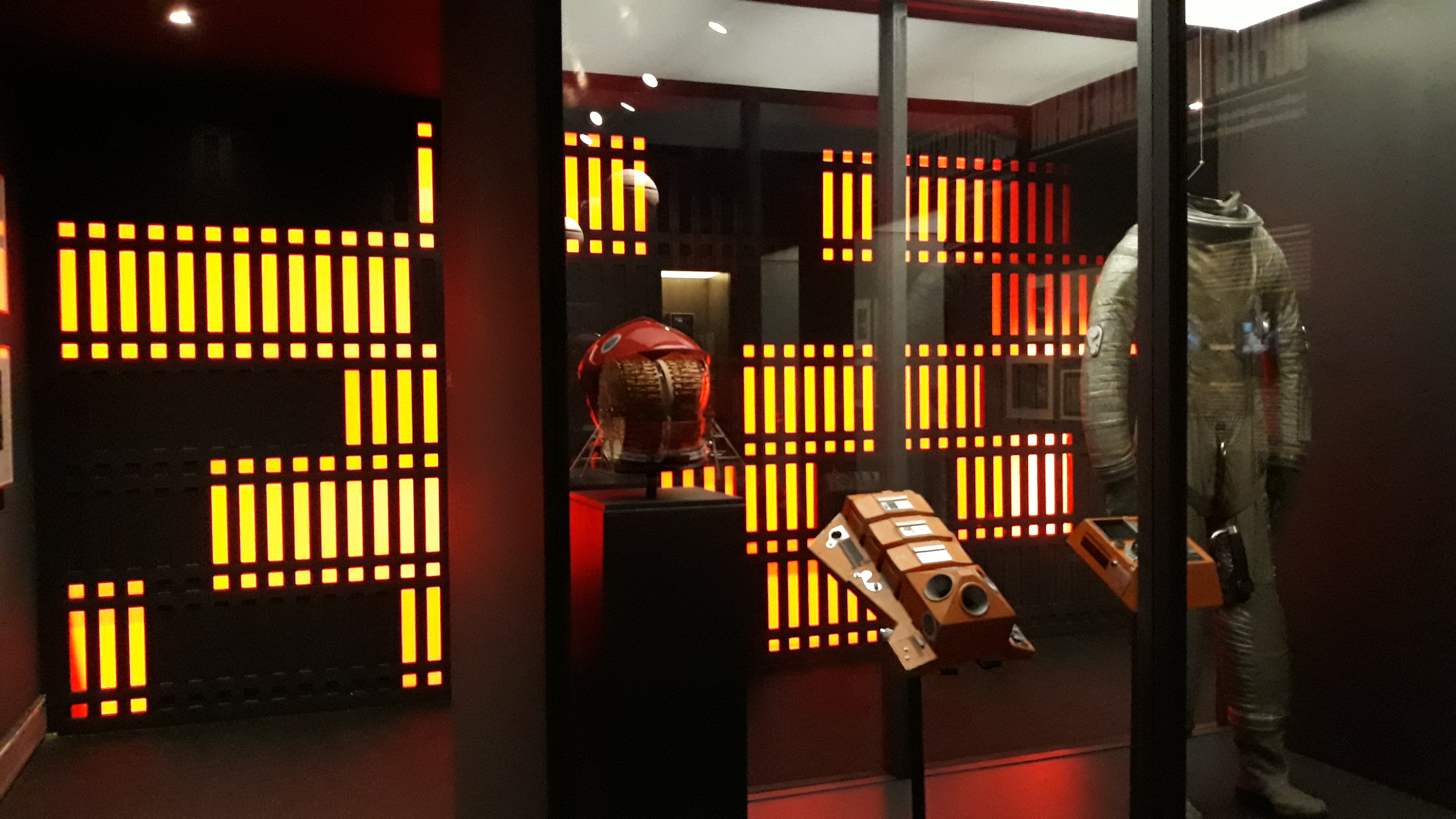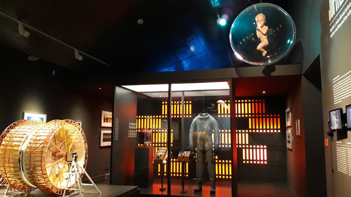 Entramos a continuación en la impresionante sala de 2001 Una Odisea del Espacio con una réplica exacta de HAL 9000 cantando Daisy Bell. Te puedes tirar ahí horas leyendo todo el material, observando la maqueta de la lanzadera de la Pan American con los diseños del vestuario de las azafatas, la reproducción del enorme pasillo centrífugo con sus explicaciones científicas, se pueden ver también los storyboards y dibujos para las escenas de la puerta estelar, el traje de astronauta de Dave Bowman, el disfraz de mono… Una maravilla para friki-cinéfilos por todo lo que significó esta película en 1968.