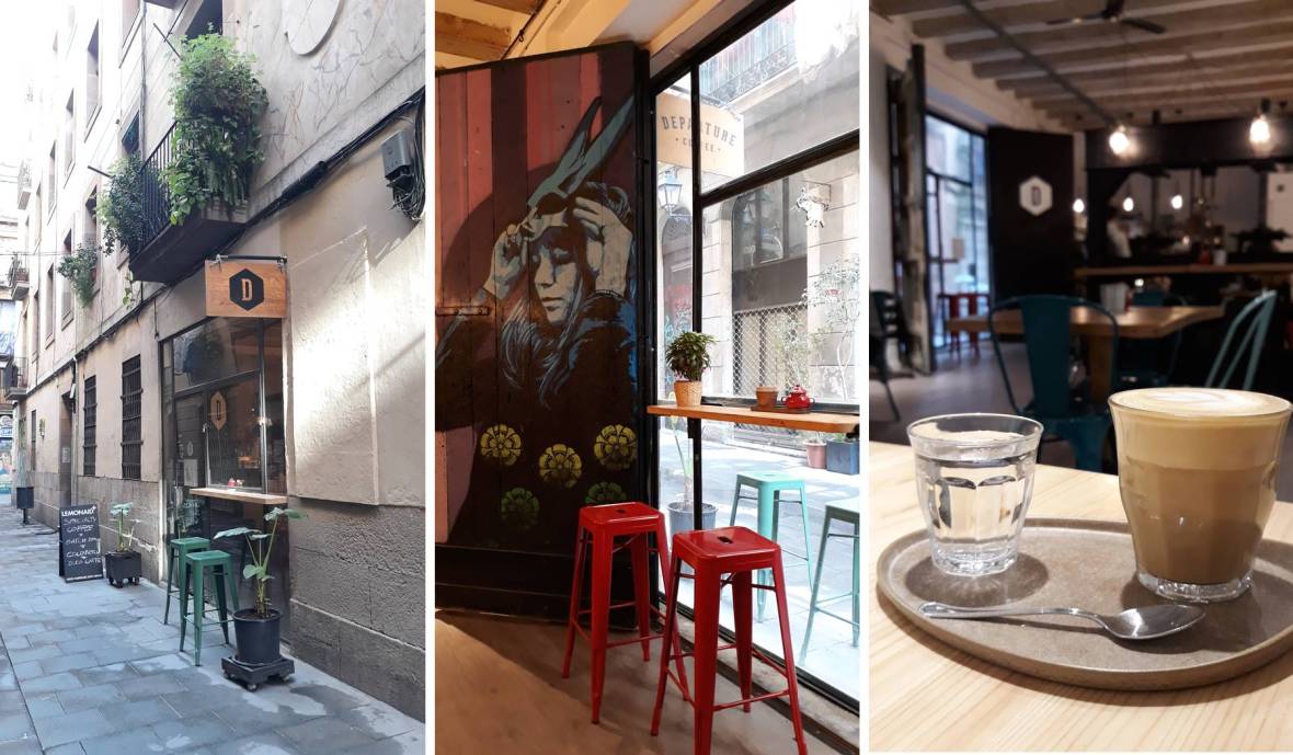 Cerca del CCCB hay en Barcelona dos cafés muy recomendables, el diminuto Dalston Coffee y el Departure Coffee Co.