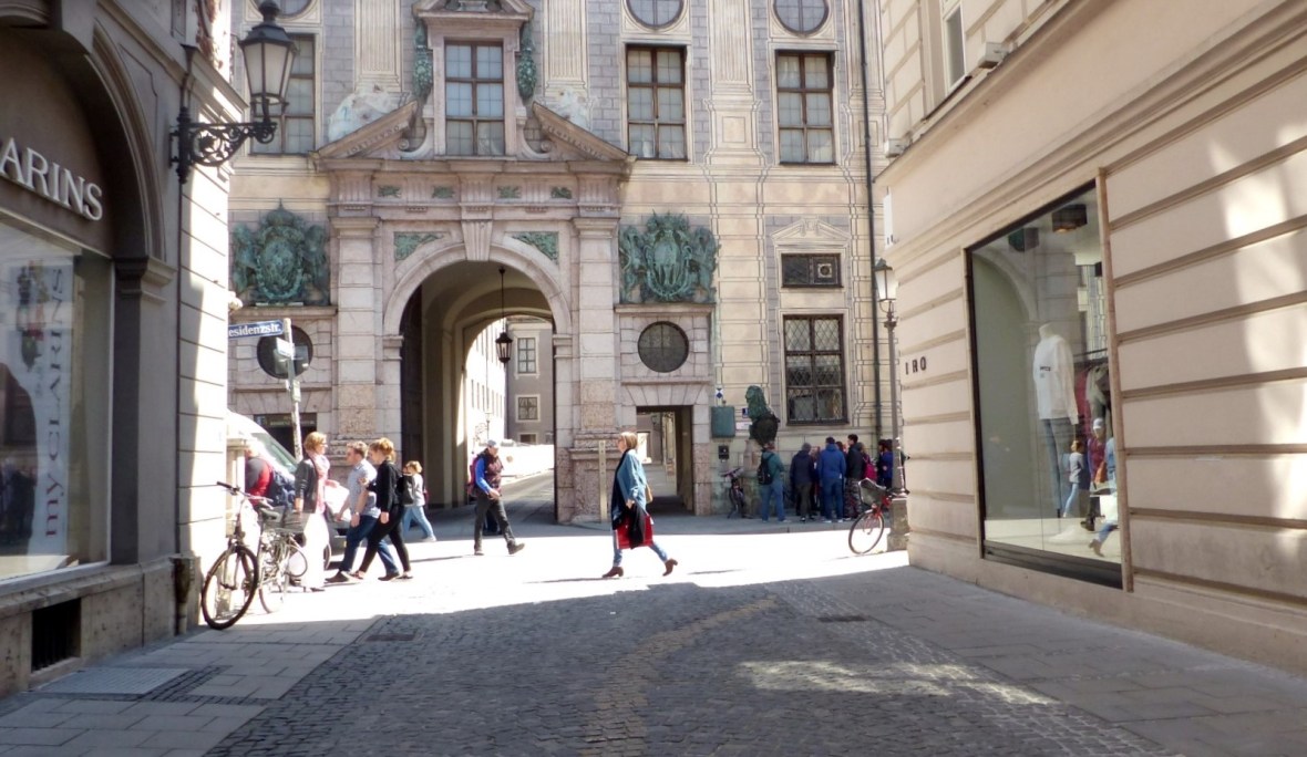 Hacia el norte de Marienplatz parte la Weinstrasse que se prolonga en la Theatinerstrasse, calles comerciales que atraviesan distintas plazas y monumentos. En esta zona está el templo gourmet Dallmayr, las galerias Fünf Höfe, el palacio Residenz, plazas como Max-Joseph-Platz o la Odeonplatz, curiosas calles como Drückebergergasse con sus adoquines dorados y su historia, y preciosos jardines como el Hofgarten.