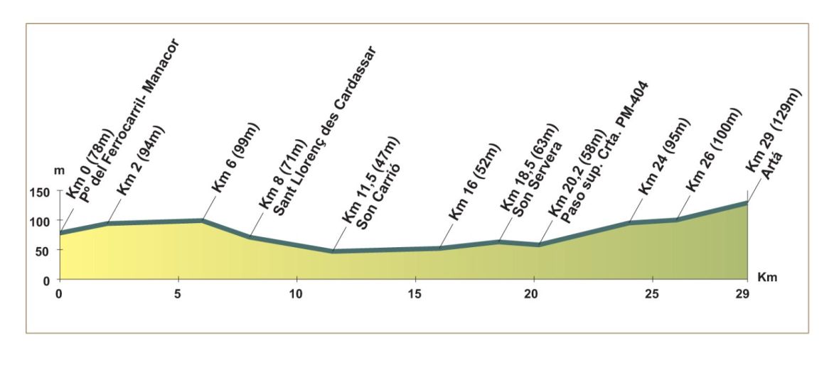 Que me perdonen los manacorins, pero creo que el tramo que parte de Manacor hasta Sant Llorenç es el menos bonito y prescindible, es prácticamente plano y transcurre casi en su totalidad junto a la carretera. Así que los tramos a descubrir serían: