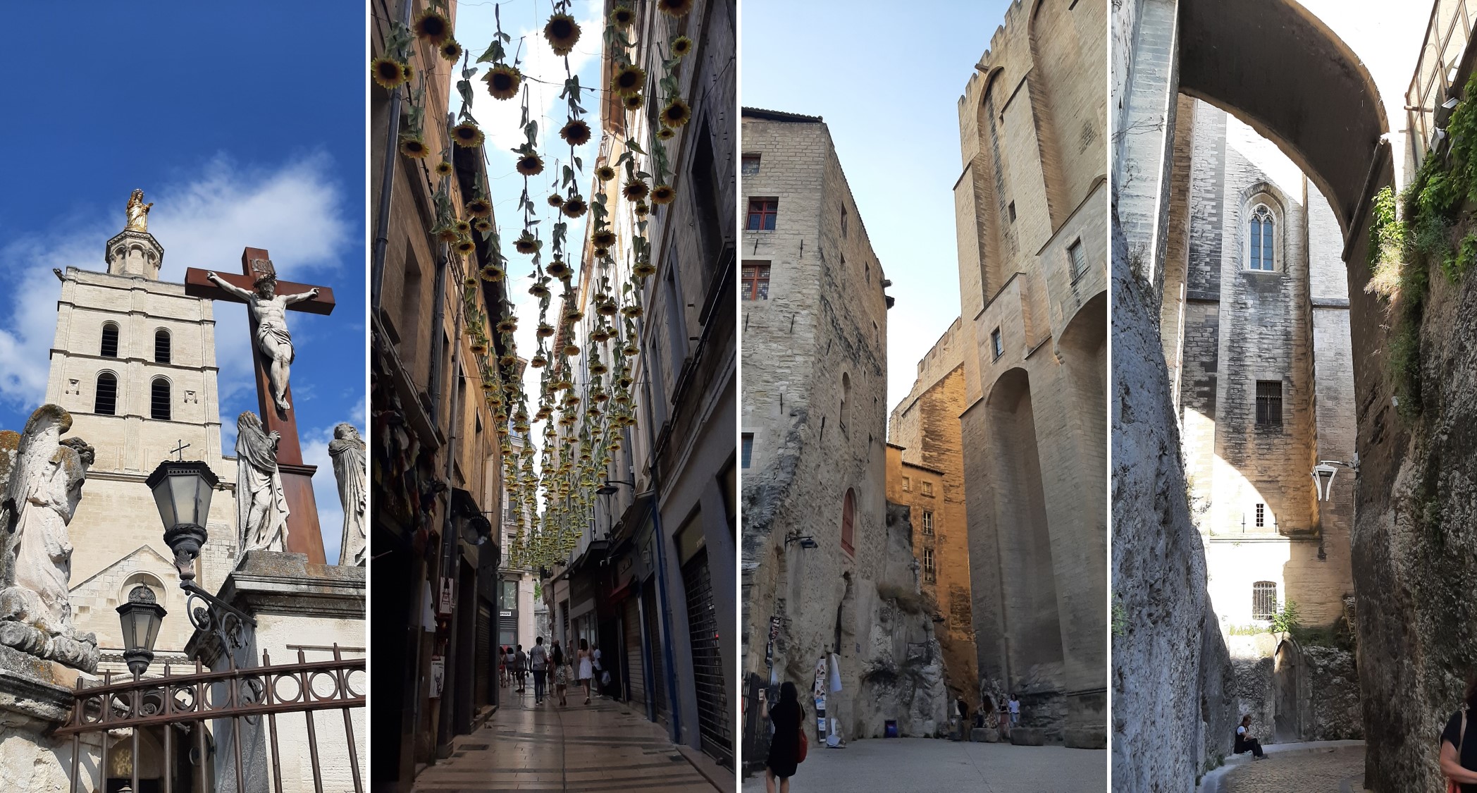 Desde allí hasta Avignon, la ciudad papal. Si dejas el coche en el parking Palais des Papes, sales directamente a la plaza sin esperarlo y te quedas sin palabras. Avignon es brutalmente monumental y buena parte es gracias al inmenso Palacio Papal, que lo domina todo. La Catedral, a su lado, parece una miniatura. Aparte, la ciudad intra-muros está llena de iglesias, palacios, jardines, avenidas y destacan los restos del famoso puente de Pont St-Bénézet.