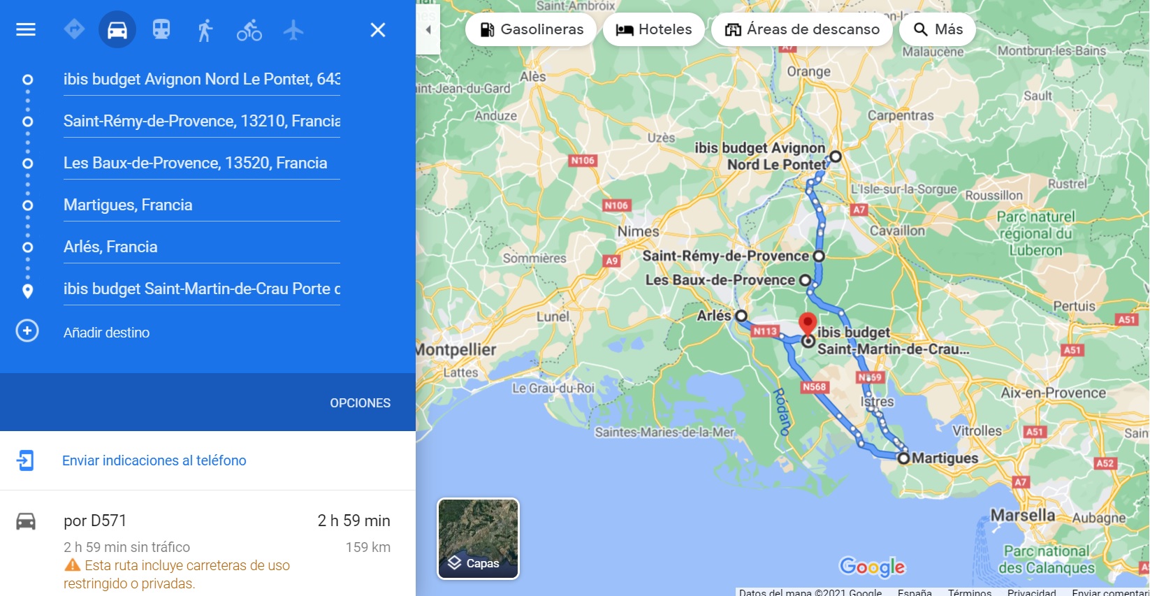 Datos prácticos: 159 kilómetros, sin peajes