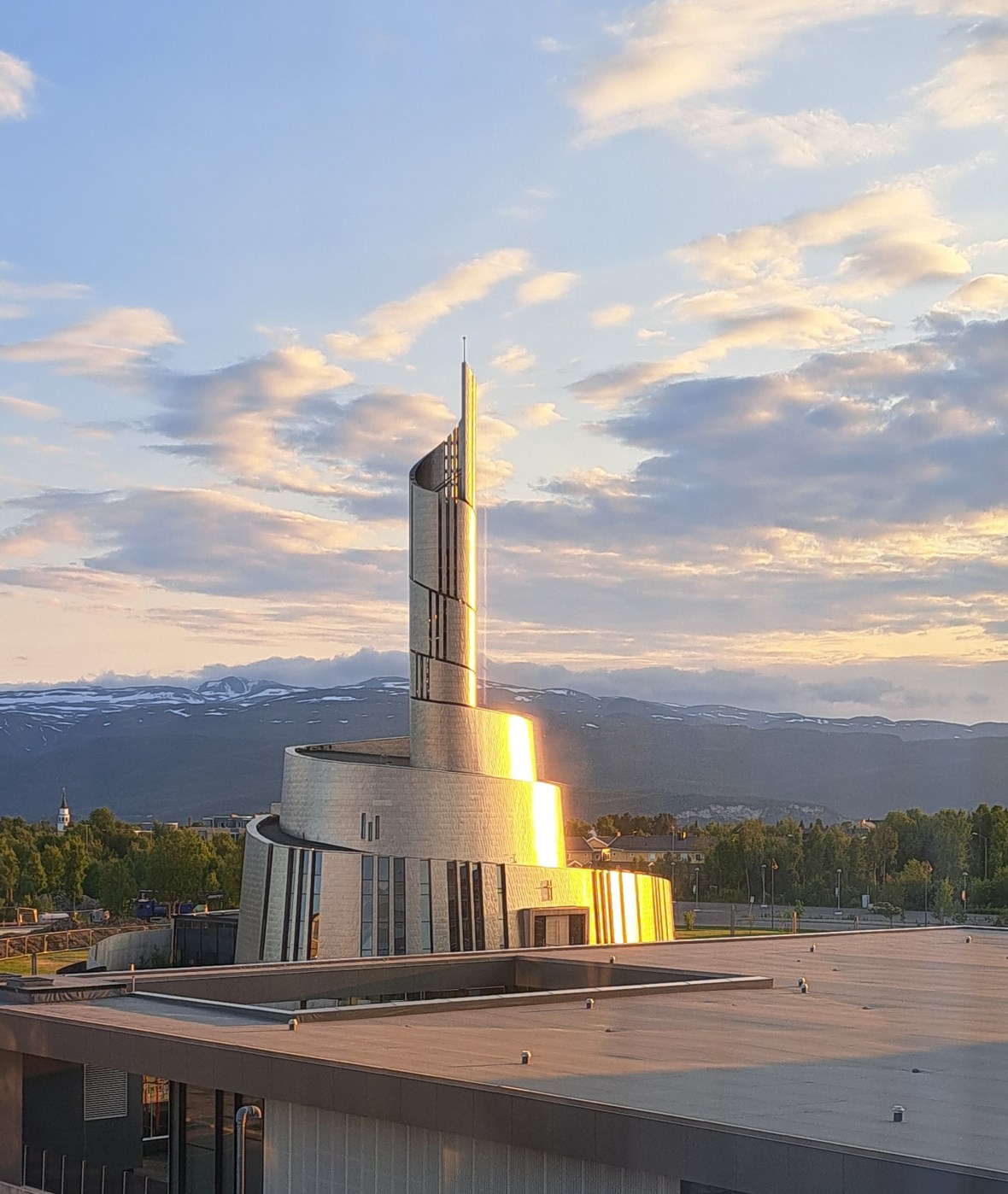 Como mencioné anteriormente, si decides emprender esta ruta, lo más probable es que vueles a Alta (a menos que partas desde Tromsø). Si es así, te darás cuenta que el aeropuerto se encuentra a escasos 10 minutos del centro y se puede llegar en autobús urbano. Sin embargo, debo decir que el centro de Alta deja mucho que desear, ya que a mi gusto carece de alma y personalidad. Lo que se supone que es el centro de la ciudad consiste en un centro comercial y una calle con restaurantes y hoteles, mientras que el resto está compuesto por áreas residenciales diseminadas y un puerto bastante feo. La única cosa destacable es la Catedral de las Auroras Boreales (Nordlyskatedralen Alta kirke), cuya torre en espiral recuerda a las formas que dibujan las luces del norte. Con el sol, la torre construida en titanio brilla y refleja tonos dorados. Sin embargo, no recomendaría entrar, no vale nada la pena y además es de pago.