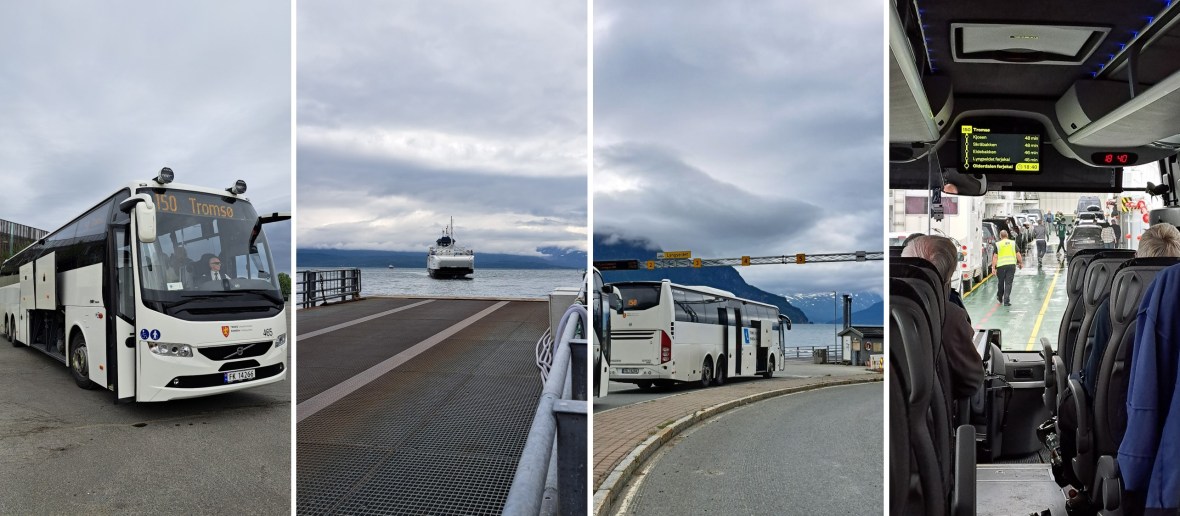 Para mi segunda etapa del viaje ya me tenía que desplazar a otra zona a 7 horas en coche, incluyendo dos trayectos en ferry. Para evitar conducir durante tanto tiempo y tener que devolver el coche en un lugar diferente al de la recogida, decidí ir en autobús hasta Tromsø. Podría haber cogido un vuelo y llegar en tan sólo media hora, pero la idea de recorrer la zona de los Lyngen Alps cómodamente sentada, cruzando los fiordos en ferry, me pareció una buena opción. Además, ahorraba dinero, lo cual siempre es importante, especialmente en Noruega.
