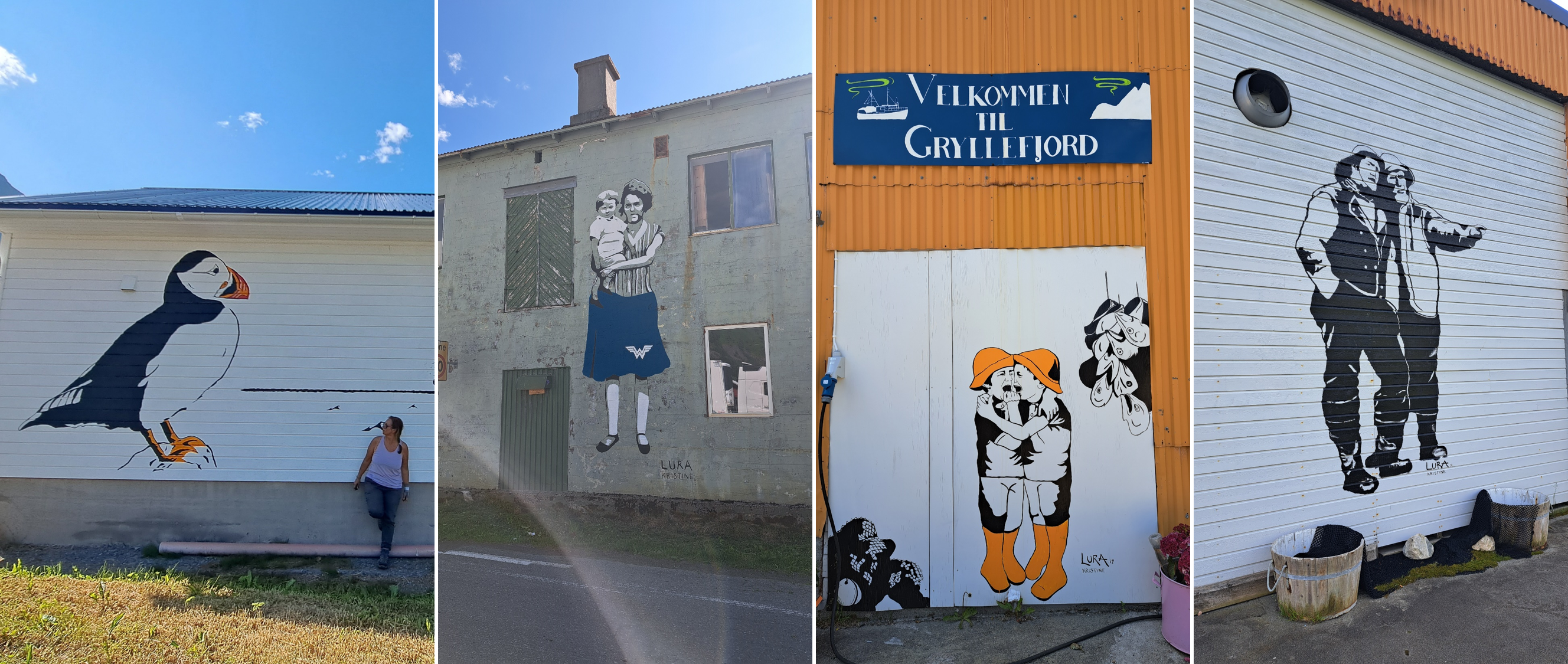 Una vez cruzas el puente, puedes o subir montaña arriba hasta Torsken, donde ya sí que sí se acaba la carretera, o desviarte a la derecha hasta llegar a Gryllefjord, un animada localidad pesquera donde todo gira al ferry que enlaza Senja con Andenes (en Vesterålen), la ruta natural entre Senja y Lofoten si no quieres tener que tragarte más de 6 horas de conducción por el continente. En el pueblo hay multitud de arte callejero y murales, destaca uno de un frailecillo a la entrada del pueblo.
