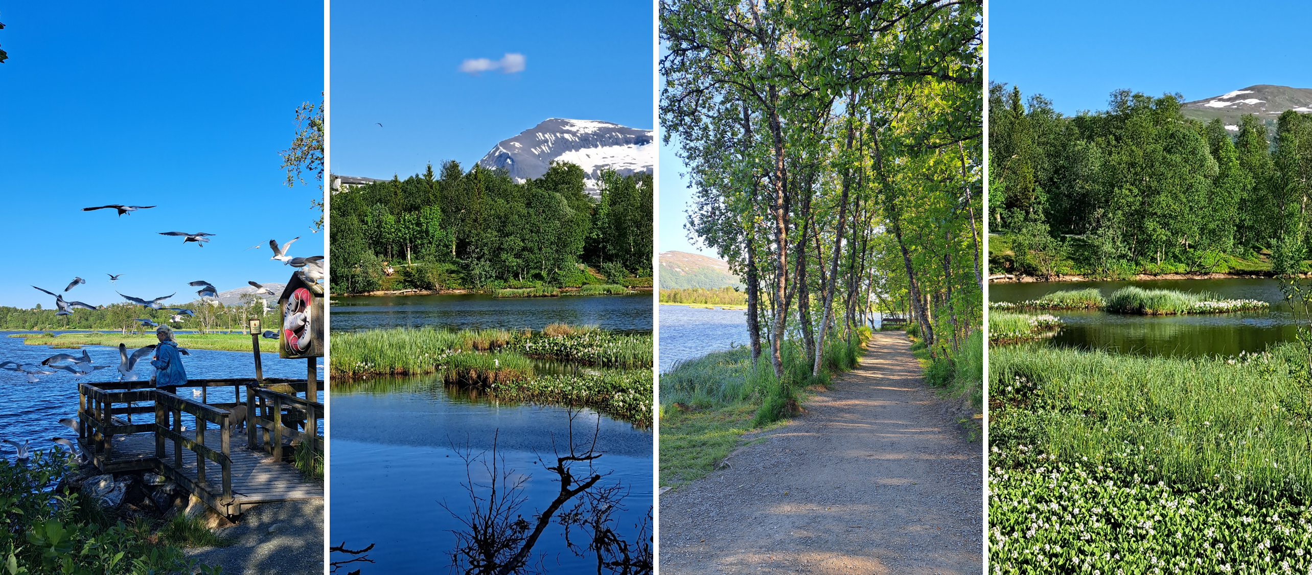 Otra visita que realicé y me sorprendió gratamente fue cuando regresé al lago Prestvannet. En invierno, desaparece bajo toneladas de hielo y los árboles se cubren de nieve. Pero esta vez, el lago y sus alrededores estaban llenos de vida, con una gran variedad de aves y árboles de un verde intenso, y mucha gente paseando y disfrutando de la naturaleza en pleno centro de la ciudad. Me dio envidia pensar que son muy afortunados de tener dos ciudades al año, dos ciudades completamente diferentes.