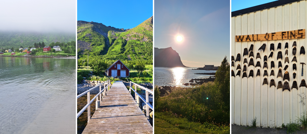 Al día siguiente a buena hora partí de Finnsnes hacia el norte de Senja. Una hora de carretera hasta mi destino en Fjordgård. La idea original para este día era llegar pronto para hacer la excursión de la subida a Segla. Pero desafortunadamente, a pesar de que el pronóstico del tiempo no lo anunciaba, una densa capa de niebla cubría la isla por completo, y no dejaba ver ni uno solo de los picos de las montañas. El tiempo en Noruega es muy imprevisible y te puedes ver obligado a tener que adaptar tus actividades. Me decidí entonces a seguir la carretera, llegar a mi hotel y allí, con un café calentito delante, pensar bien qué hacer. Para las dos primeras noches tenía reserva en el encantador Mefjord Brygge ubicado en el medio de todo. Esa tarde me dediqué a explorar el pueblo y subir al cercano pico Knuten, que aún bajo la niebla tuvo su encanto.