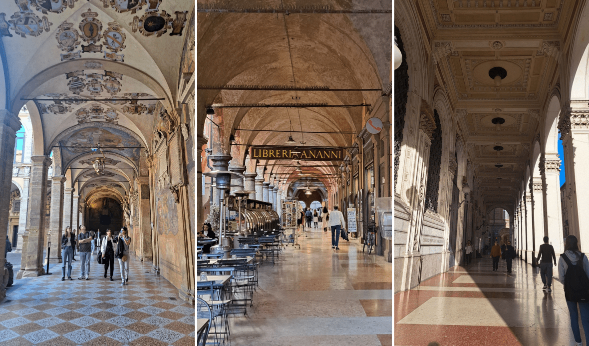 Prácticamente todas las calles de Bolonia están porticadas. Pasear bajo ellos es toda una delicia, si llueve estás protegido, y además en según que momentos, si se oyen músicos callejeros de fondo, pareces como estar en una película clásica. Via Castiglioni, Strada Maggiore, o Via dell’Indipendenza son los más populares.