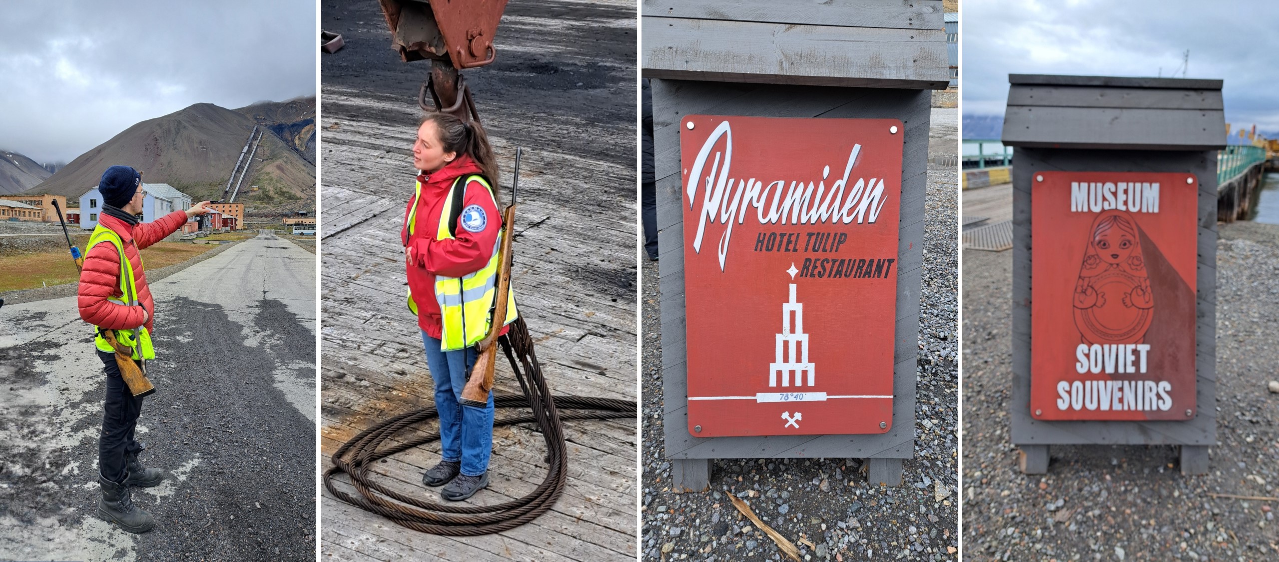 Hoy se pueden visitar algunas de sus instalaciones, siempre acompañados por guías rusos armados. No hay que olvidar que el oso polar puede entrar y campar a sus anchas y puede salirte de cualquier rincón. La mezcla de pueblo fantasma con la simbología e iconografía soviéticas lo convierten en una visita irresistible. Como curiosidad hay un hotel, una oficina de correos, una cafetería con productos típicos rusos y una tienda de souvenirs, así como la estatua de Lenin más al norte del mundo, impertérrito, contemplando el imponente glaciar Nordenskiöld que domina el pueblo. La ruta de 2 horas por el antiguo asentamiento, incluye el acceso a la piscina, al centro cultural/deportivo, donde está la tienda y la cafetería, y al recinto más fascinante a mi modo de ver, la cantina y las cocinas. Todo tal cual lo dejaron. De verdad que es como un viaje en el tiempo!