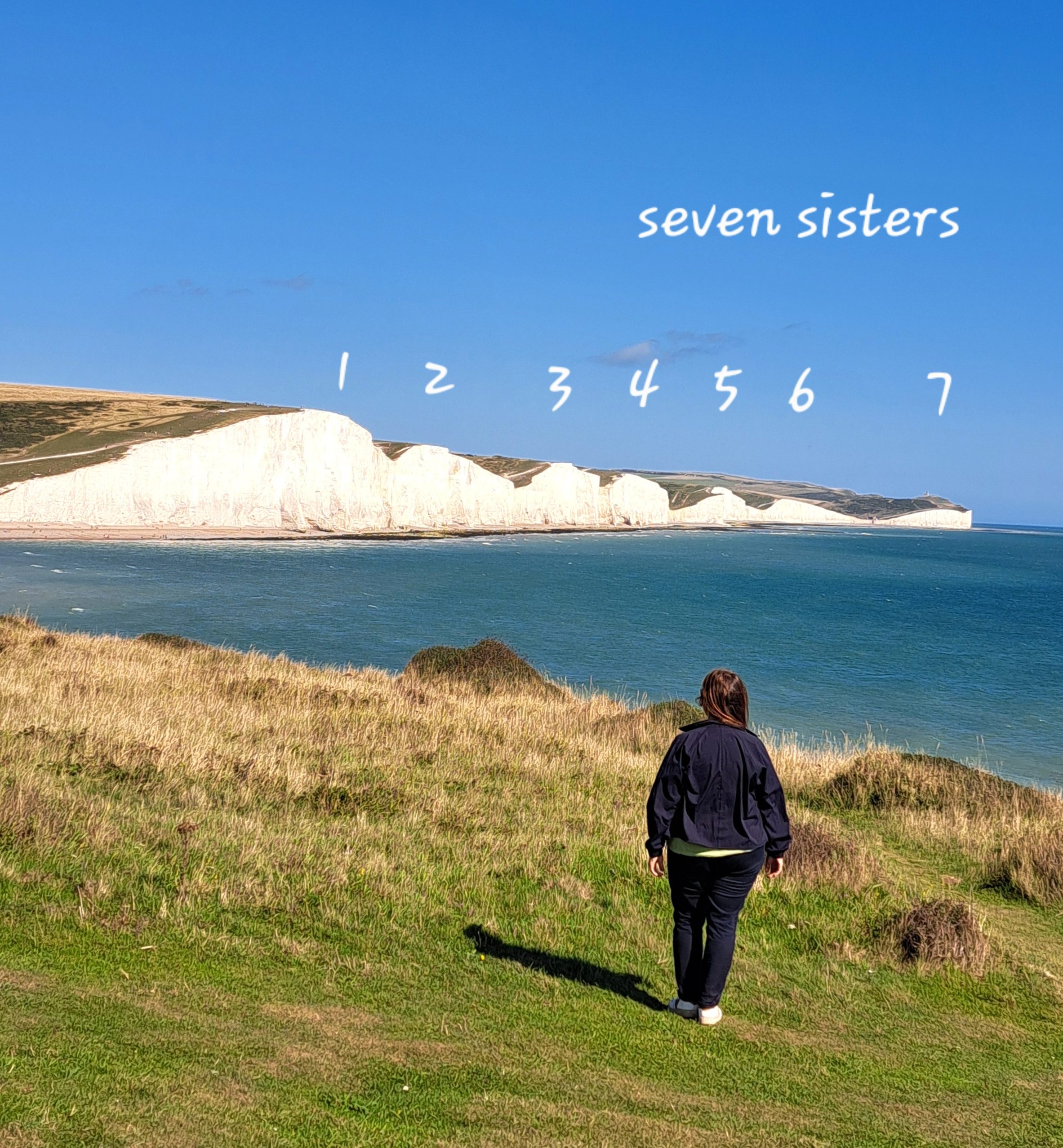 Y ya el punto culminante es llegar a las Seven Sisters, las 7 puntas del acantilado blanco que tantas veces habréis visto en películas o series. Si tienes tiempo puedes recorrer por sus cimas el sendero completo de 20 kms, pero si vas justo de tiempo o vas en un tour, hay tres puntos concretos desde donde admirarlas y bajar a la playa: