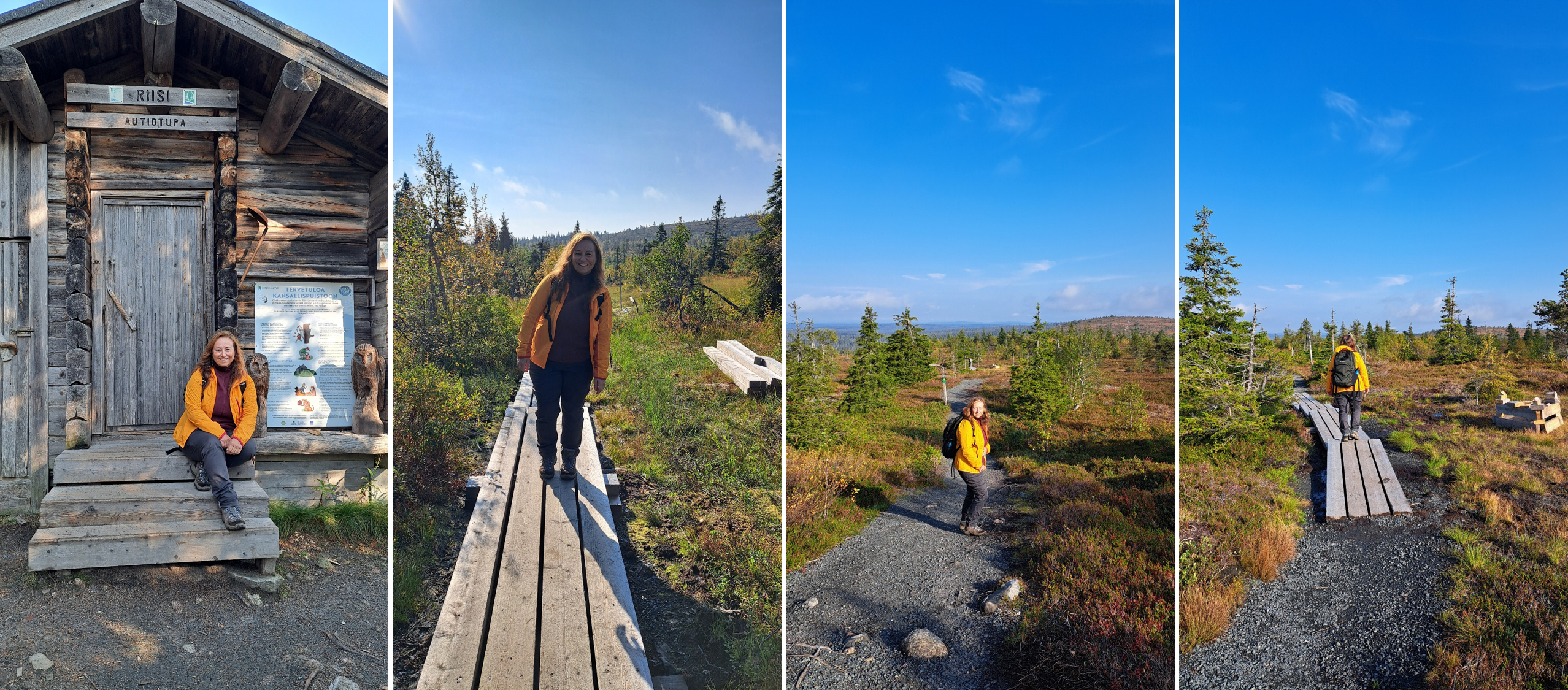 Al día siguiente el día promete. Primero paso por Riisitunturi National Park. Es uno de los parques más apreciados por los locales y es conocido por esas estampas de los árboles nevados torcidos, sólo evidentemente en invierno. Ahora en otoño ves esos mismos árboles pero de mil colores. Se pueden hacer varias rutas de senderismo, yo hice la más corta, Riisin Rääpäsy, de algo menos de 5 kms, que es precisamente la que se hace en invierno con raquetas de nieve para ver los árboles. Sube hasta la mayor elevación de la zona (465 mts) desde donde se divisa el lago Kitkajärvi, y continua hasta un refugio de montaña, donde se pueden hacer barbacoas y pernoctar.